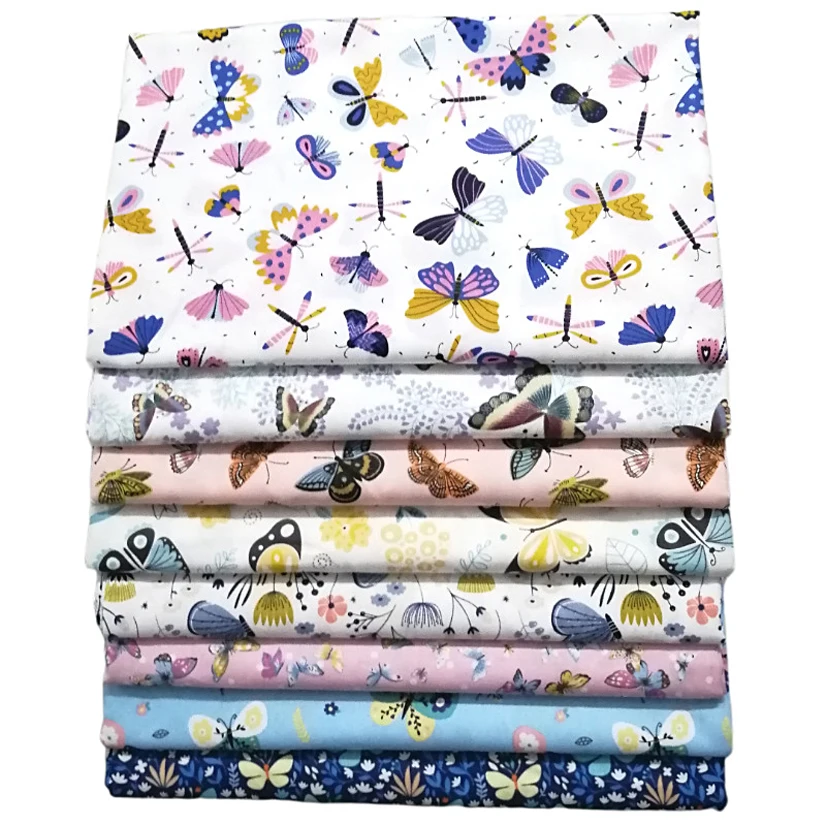 8 шт./компл. хлопчатобумажные ткани с принтом бабочки рисунки одежда платье Ткань для шитья Лоскутные ткани Рождественский материал ручной работы