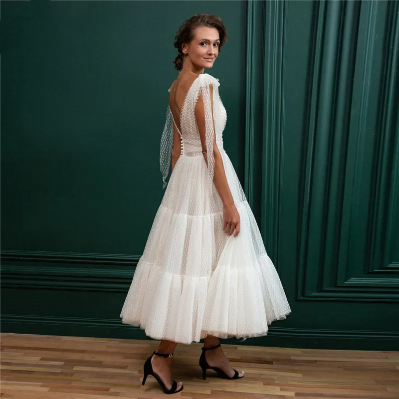 Сексуальное богемное свадебное платье с V-образным вырезом, короткое платье со складками по щиколотку, открытая спина, богемное платье для приема, белые свадебные платья Robe De Mariee