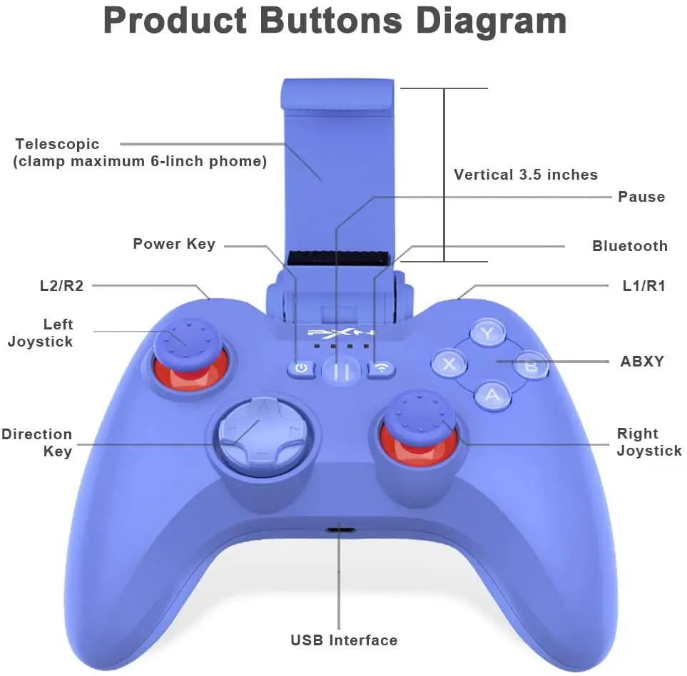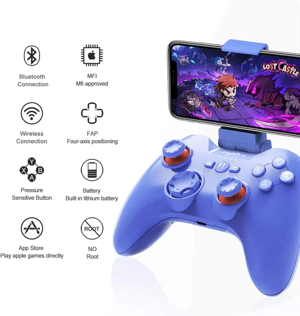 1. Сертифицированный игровой контроллер Apple MFi: игровой контроллер PXN официально сертифицирован Apple. Требуется iOS 7/ iOS 8 или более поздней версии, iPhone 12 mini, iPhone 12, 12 Pro,12 Pro Max, iPhone 11, 11 Pro, 11 Pro Max, iPhone X, XR, XS, XS Max, 8, 8 Plus, 7, 7 Plus, 6S, 6S Plus, iPad Air, Для iPad mini 2 / 3, iPad4, iPad mini и iPod touch 5