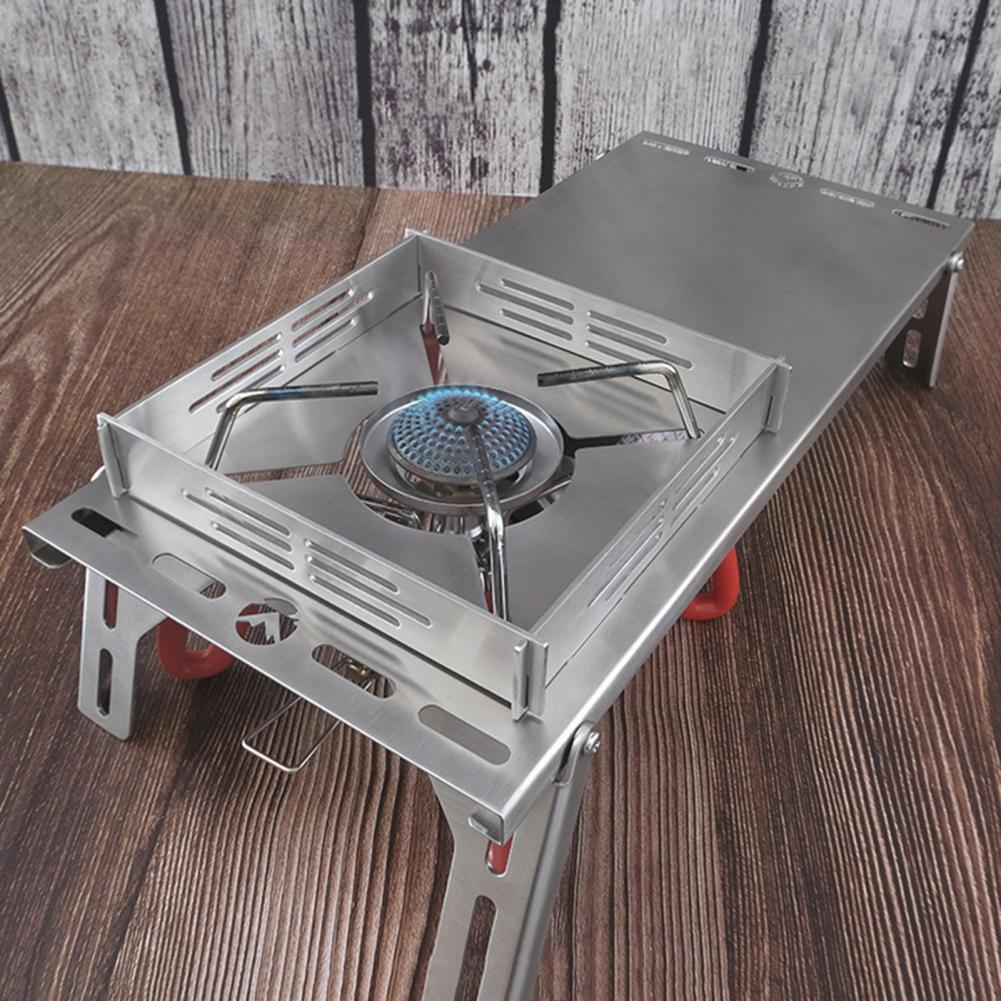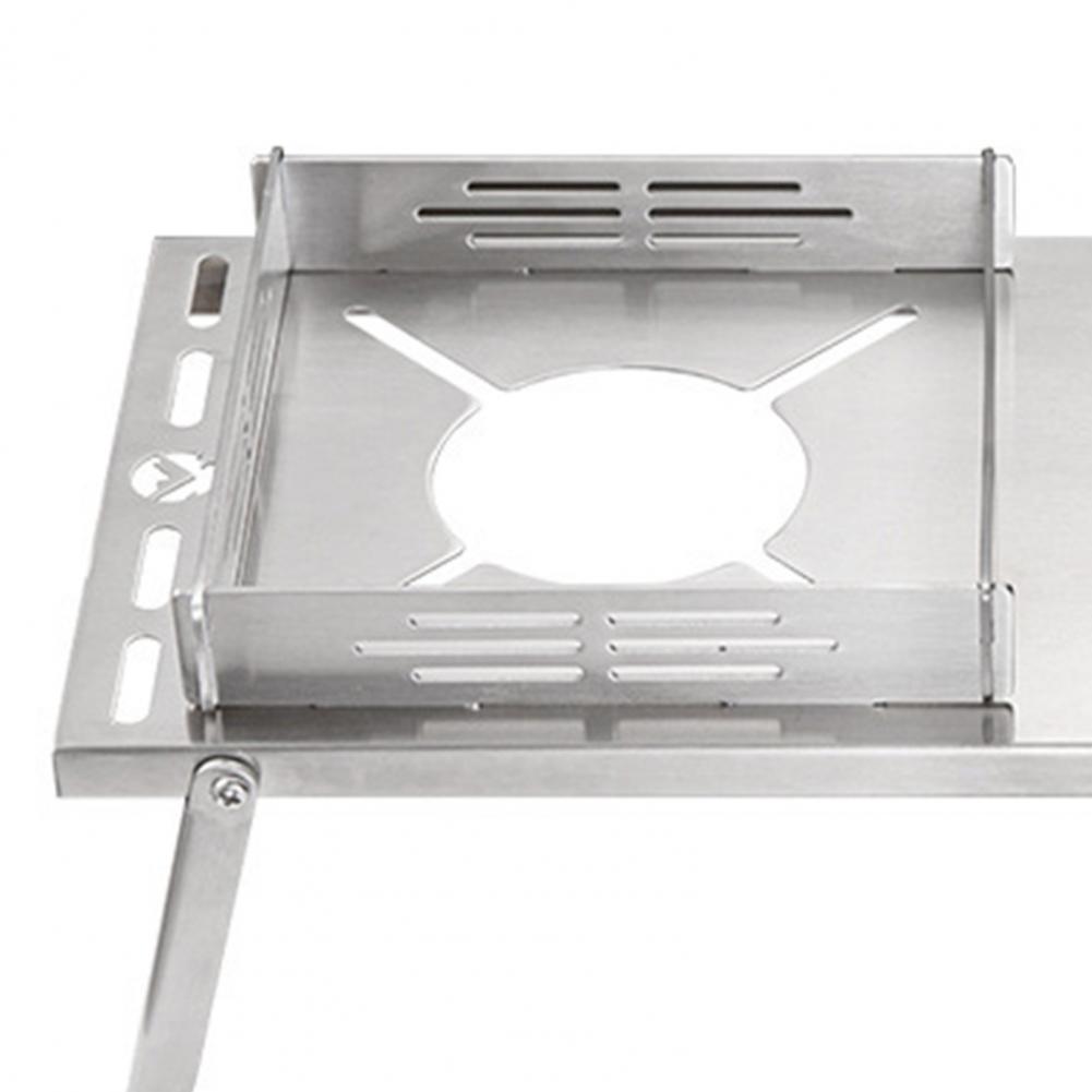 Изготовлен из нержавеющей стали, стол прочный и устойчивый к коррозии. Ветрозащитный щит из нержавеющей стали делает его близким в контакте, не боясь тряски.