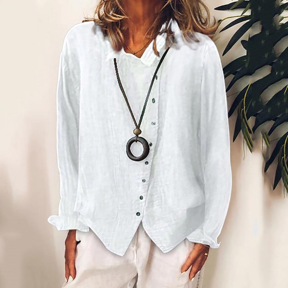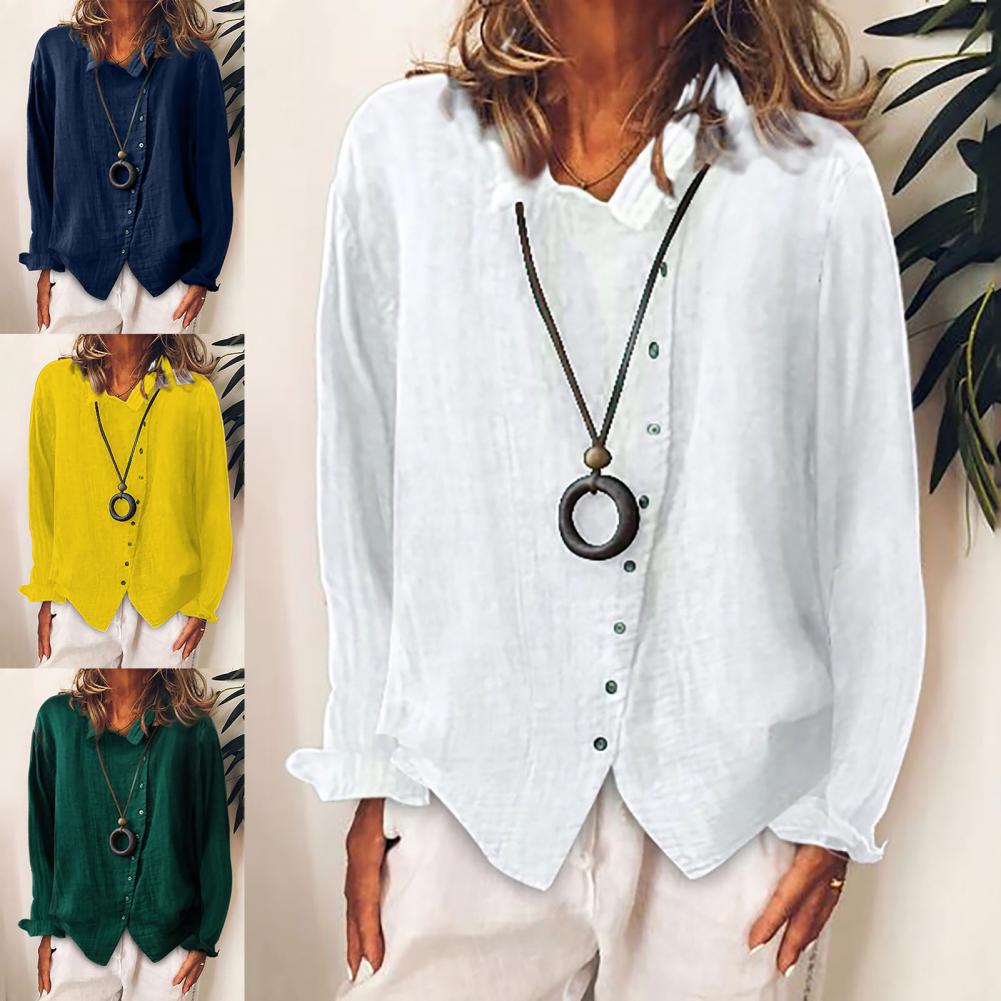 2021 Женская хлопковая льняная Свободная рубашка, асимметричная однобортная рубашка с отложным воротником и длинным рукавом, модные однотонные топы для кожи