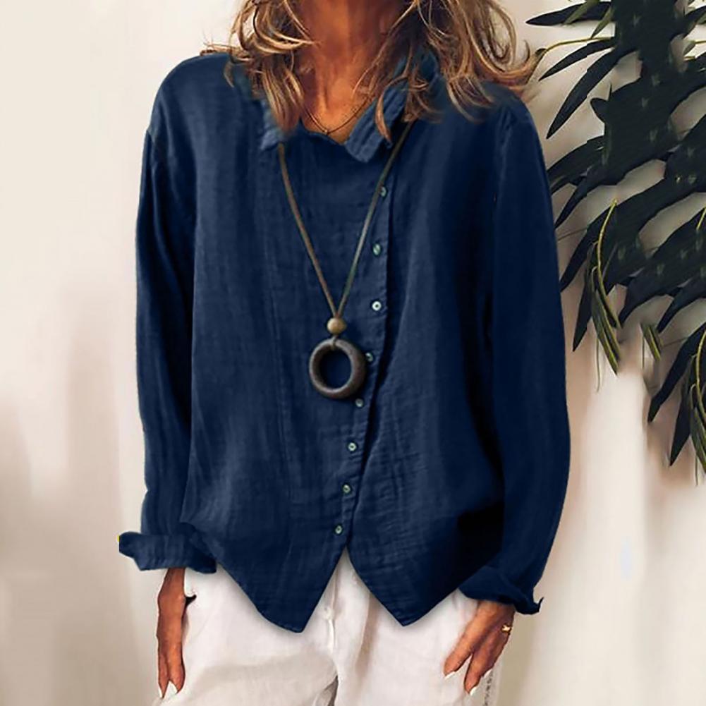 Женская рубашка изготовлена из высококачественного хлопкового льна, мягкая, дышащая и удобная в носке.