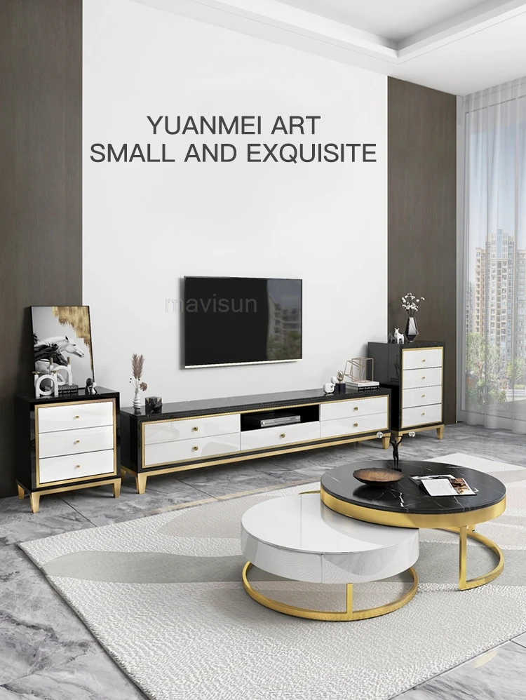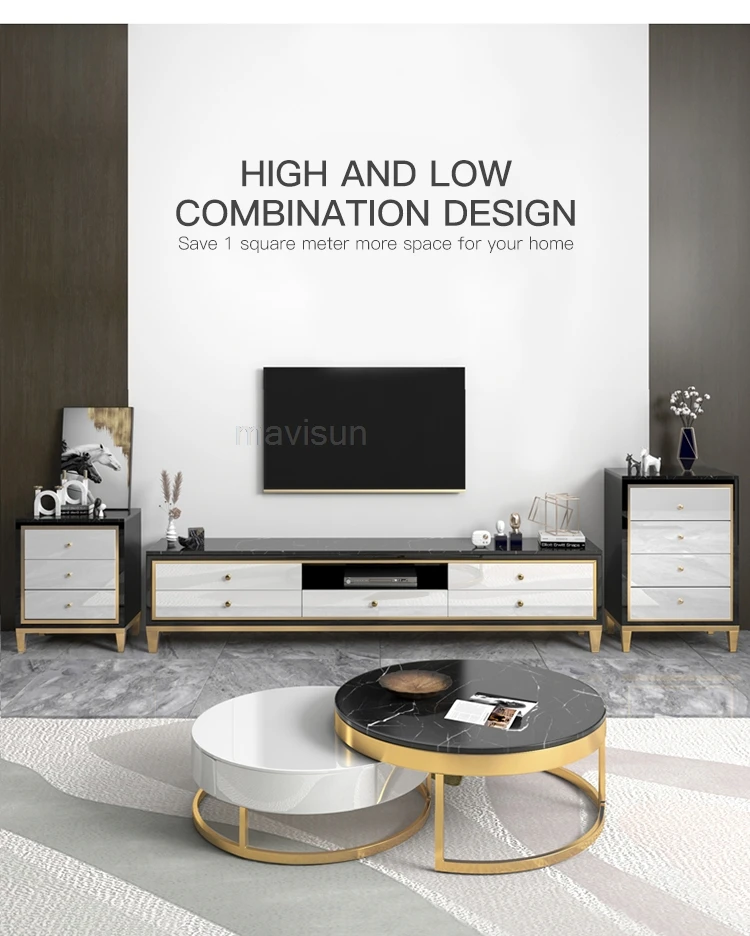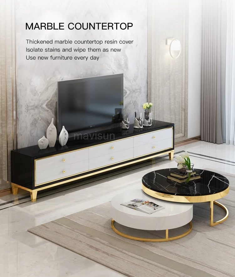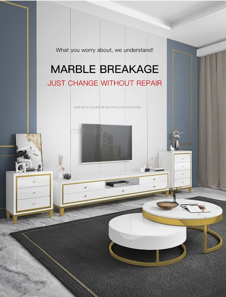 2) Материал:Настольный журнальный столик и ТВ-шкаф: Высококачественная каменная плита
