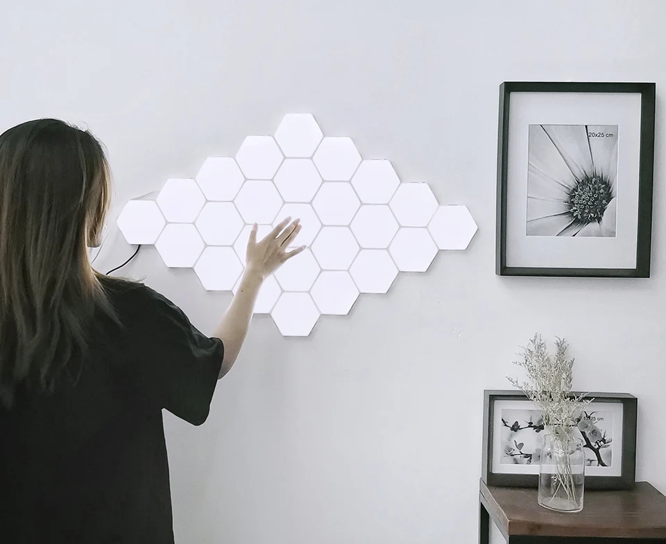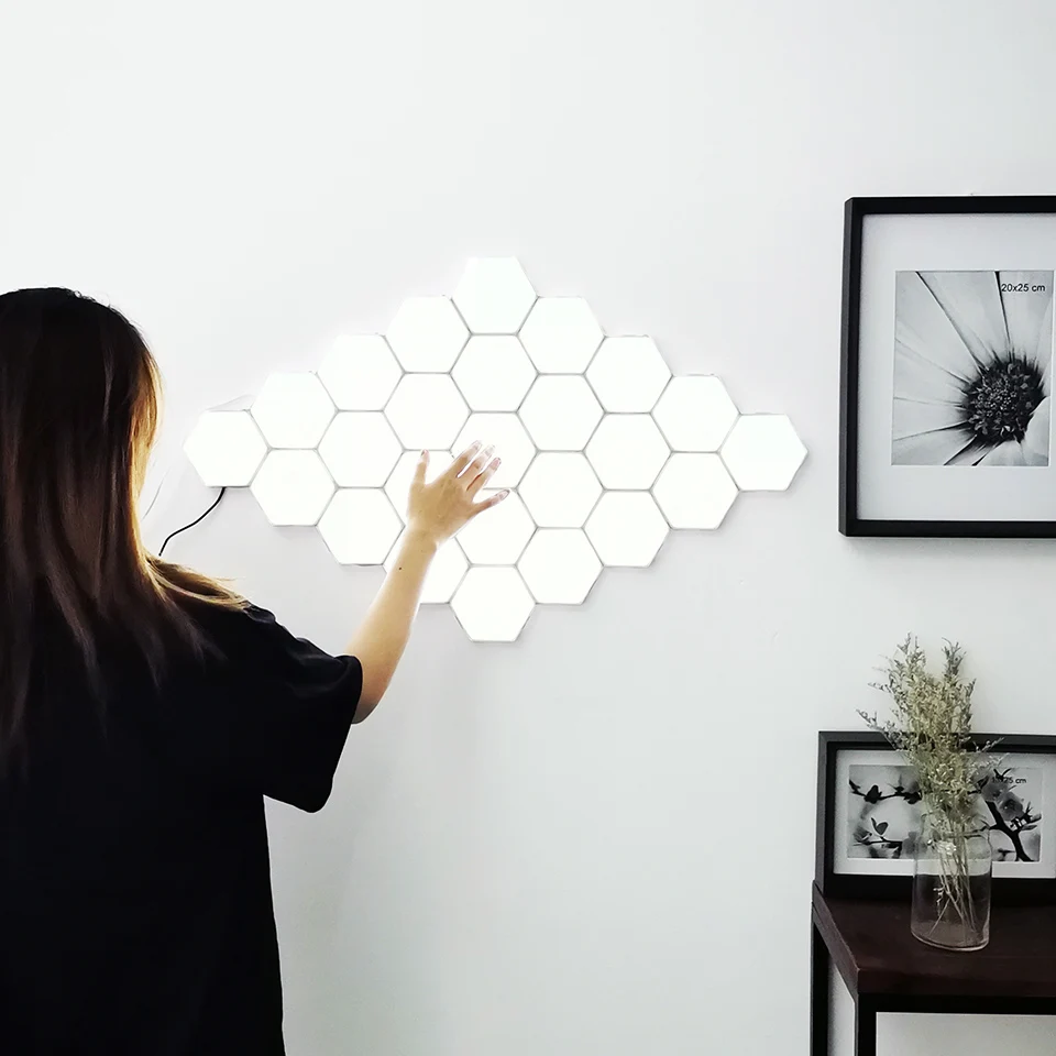 【Модульный сенсорный светильник ing】это модульный сенсорный настенный светильник. Используйте шестигранную дискету для создания любой структуры, чтобы удовлетворить ваши потребности, затем включите и выключите, прикоснувшись к ней.