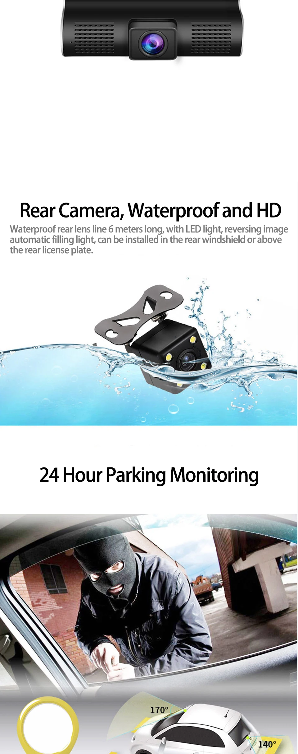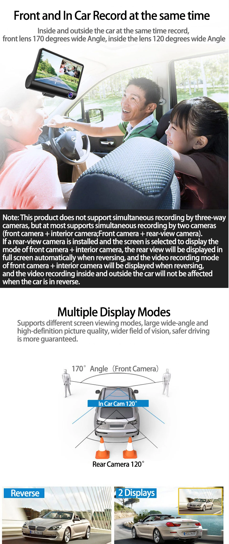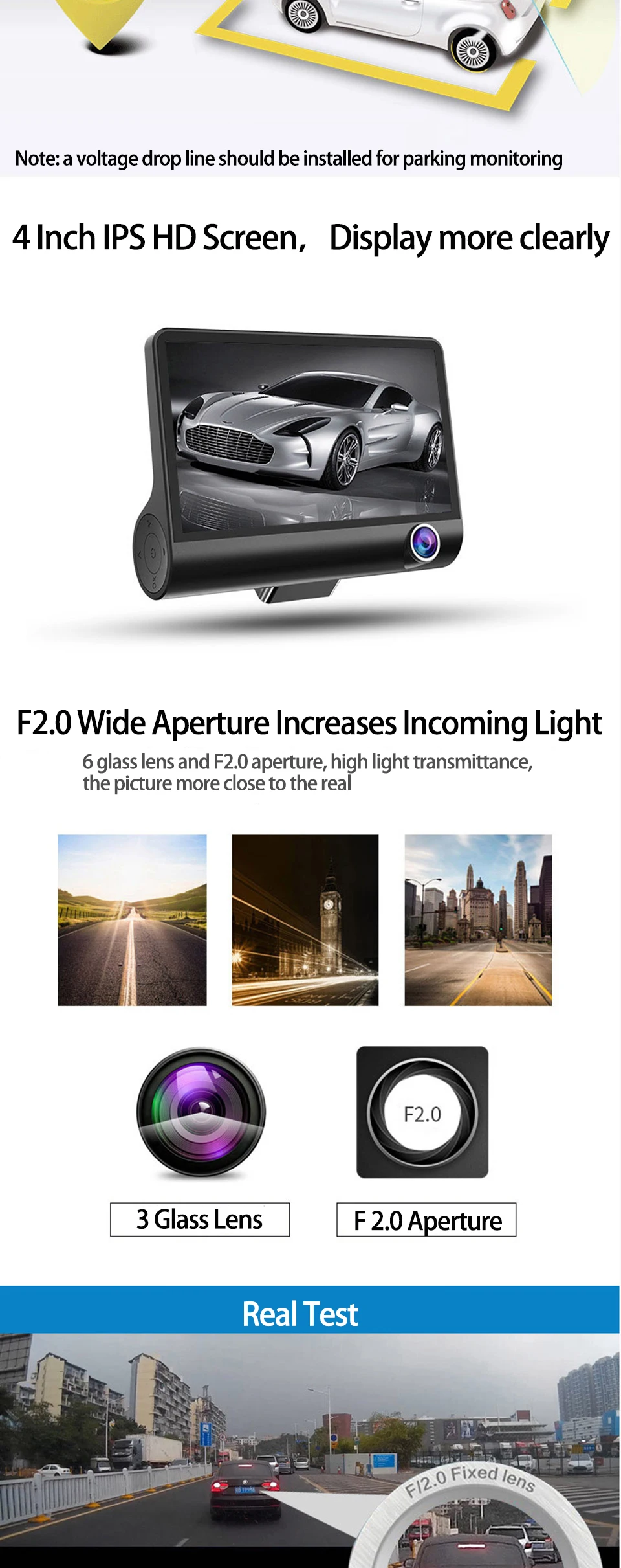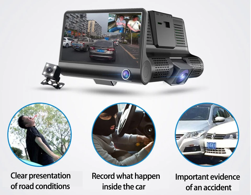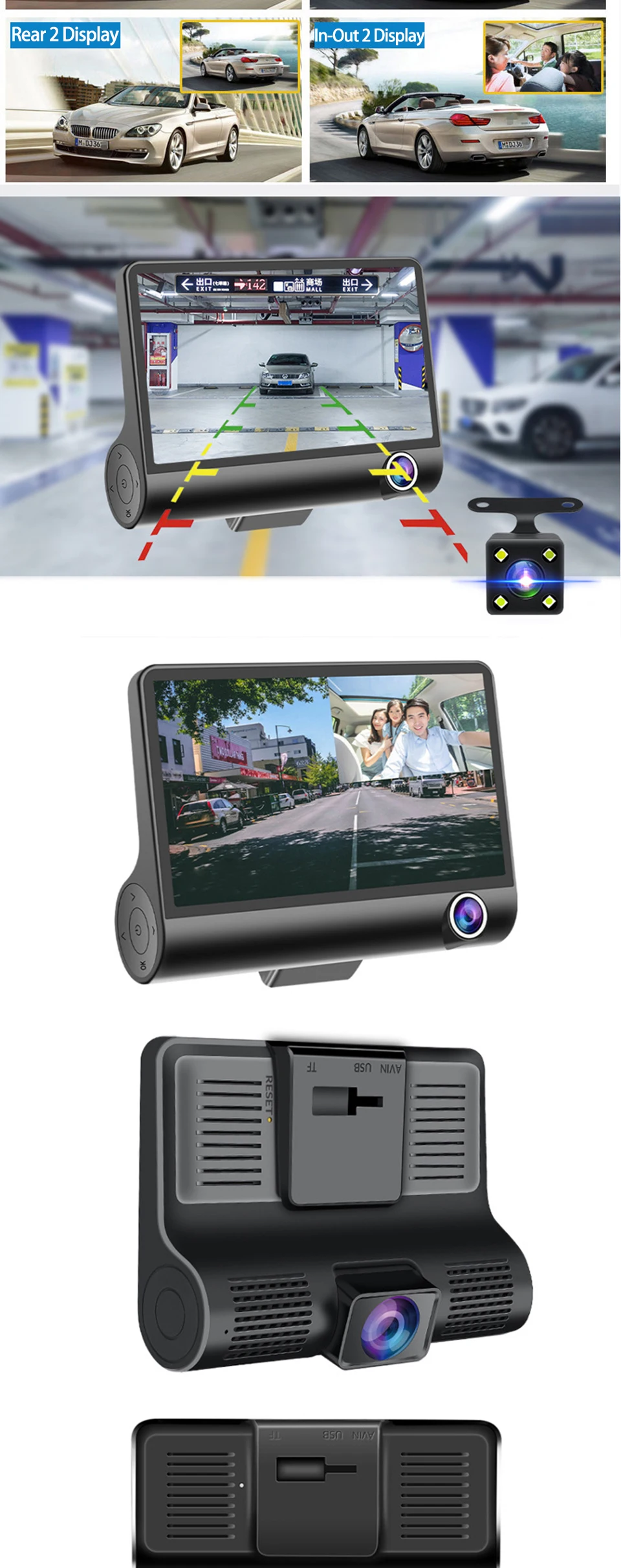 Taida 1080P Full HD 4 дюйма Дисплей Видеорегистраторы для автомобилей тремя объективами парковки записи заднего вида приборная Камера автомобильный приводной Авто цифровой видеозаписи (DVR) Ночное видение