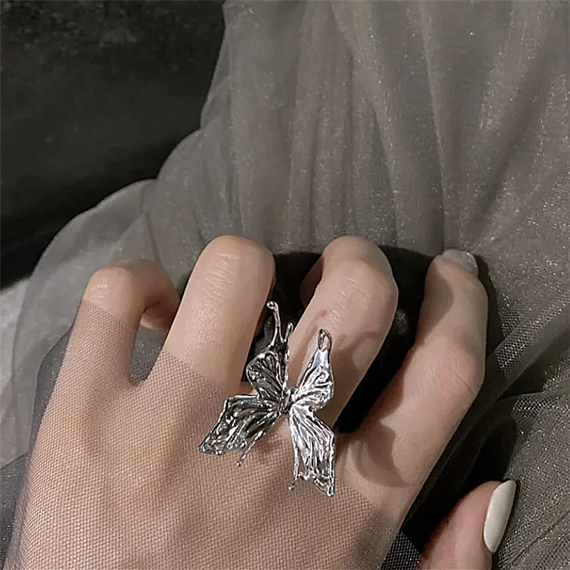 Винтажные простые кольца с бабочками в стиле панк, массивные металлические женские кольца модного серебристого цвета, геометрические подвески, открытые кольца