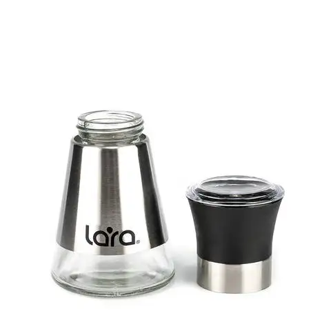 Название бренда LARA Происхождение Китай Тип измельчителя Мельницы для соли и перца Материал стекло Дополнительный материал: нержавеющая сталь, пластик TPR Объем: 100 мл Состав мельничка для перца Мытье в посудомойке: только части из стеклавнешний вид товара