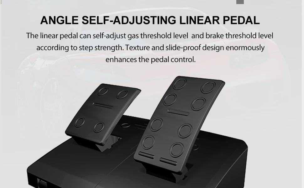 Линейная педаль может автоматически регулировать пороги ускорителя и торможения в соответствии с педалирующей силой, вы можете испытать более реалистичную гоночную игру; Педали имеют складную структуру и нижнюю противоскользящую конструкцию, таким образом, при педалировании он не будет падать.