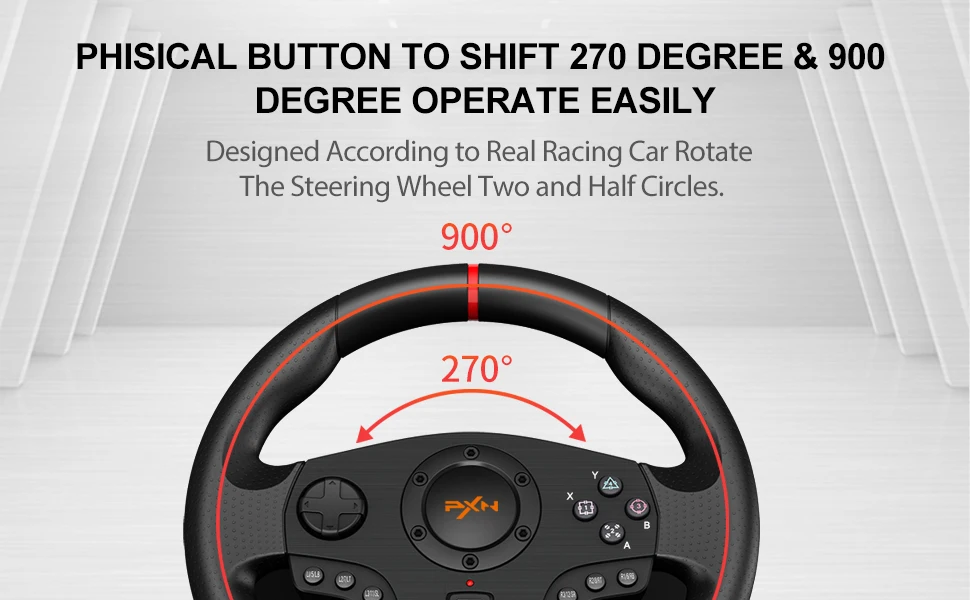 Физическая кнопка для переключения 270 градусов и 900 градусов, работает легко. Разработан в соответствии с реальным вращением гоночного автомобиля