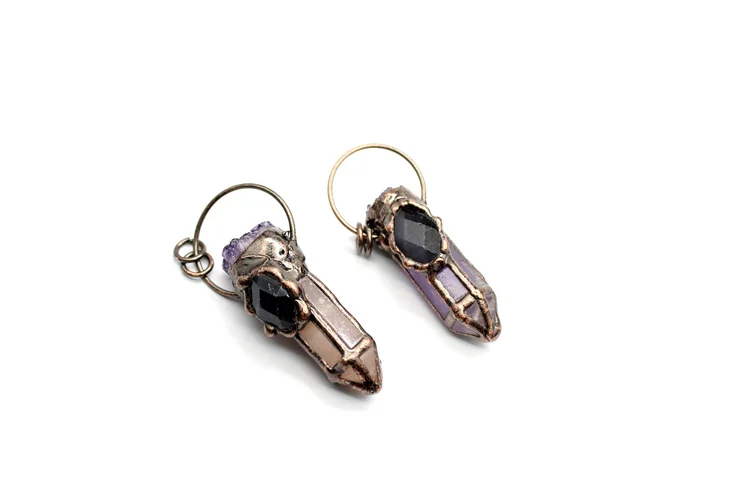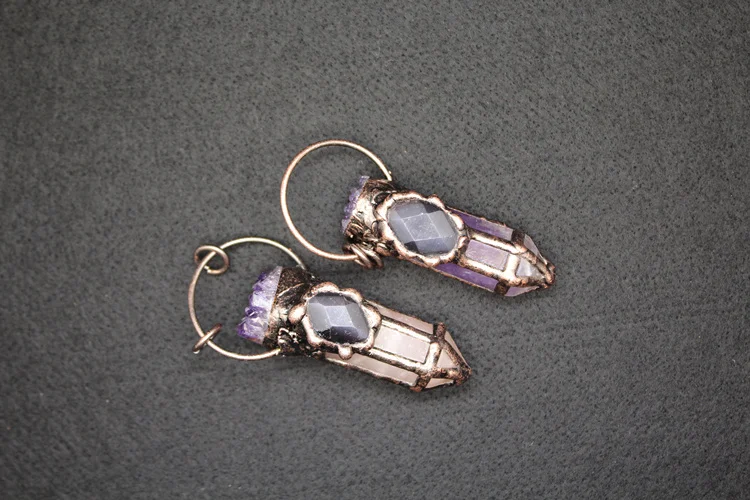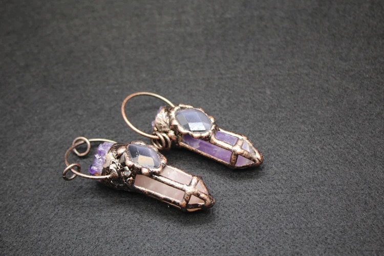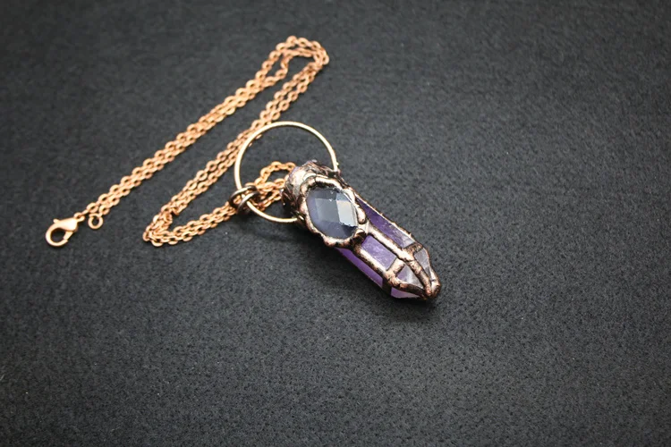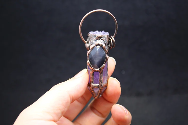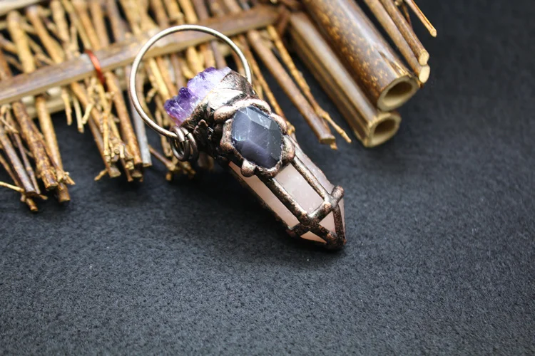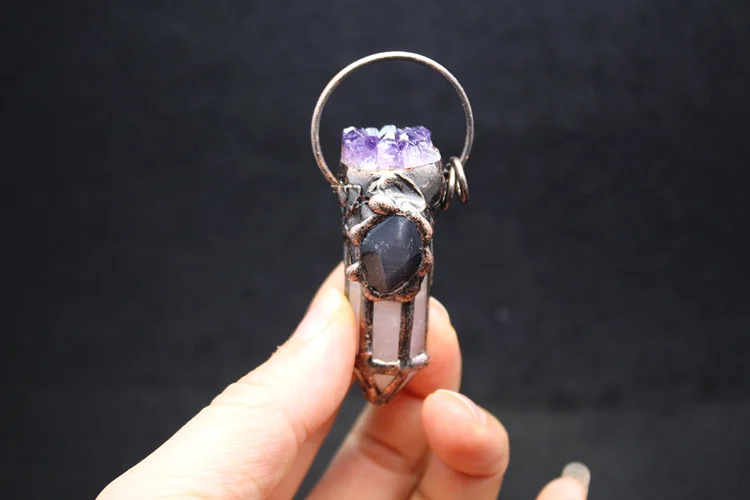 Новинка, натуральный 1 шт., шестигранный розовый аметист, кварцевый камень, винтажный кулон, кепка и овальные глаза, бисер, проложенный муравьем, золотое покрытие, специальный
