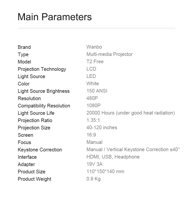 Глобальная версия Wanbo T2 Бесплатный проектор 1080P Мини светодиодный портативный проектор 19201080P Вертикальная коррекция Keystone для домашнего офиса