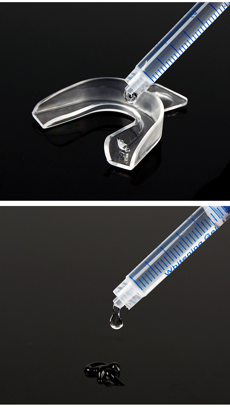 A3: перед нанесением отбеливающего геля Поместите лоток для зубов во рту, чтобы сравнить положение зубов. Отбеливающий гель следует равномерно наносить на верхний и нижний слои зубного лотка, не выходя за пределы положения корня зубов, чтобы избежать контакта геля с деснами в течение длительного времени и повреждения десен.