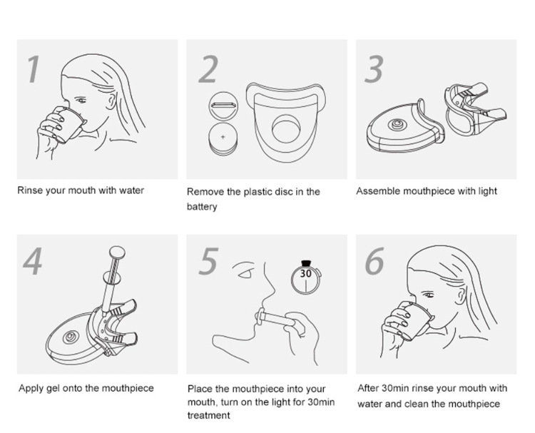 A1: при нормальной ситуации вы можете использовать один раз в день в течение 15-20 минут каждый раз. Используйте не более 1 мл отбеливающего геля для зубов каждый раз. Поставляется с маленькой крышкой, просто закройте ее после использования, чтобы предотвратить окисление геля.