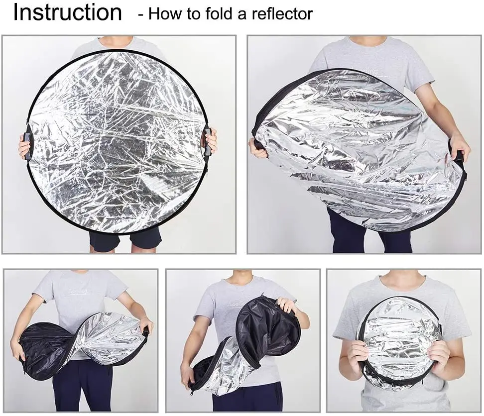 1. 43 "5 в одном портативный комплект отражателя устраняет необходимость в нескольких отражателях, шелках и твердых телах. Отражатель a