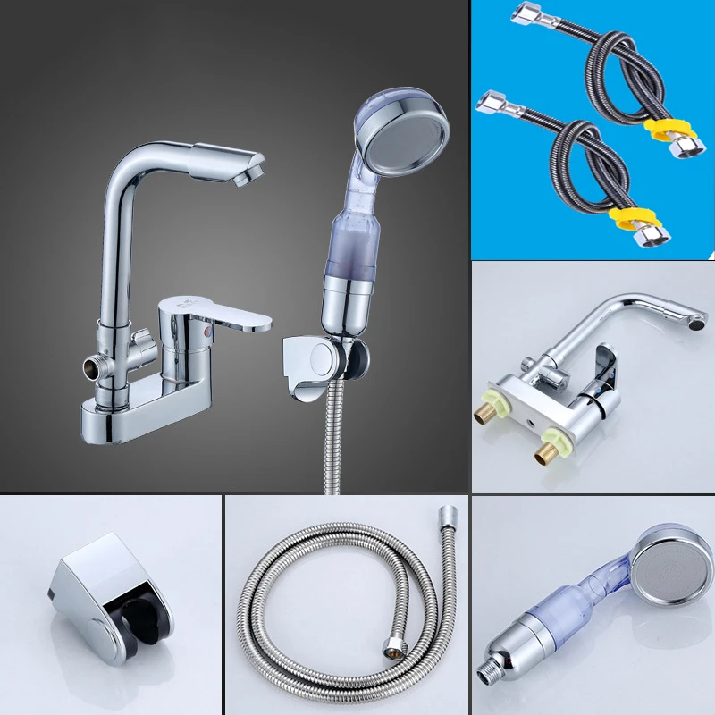 Смеситель для раковины на бортике, смеситель для горячей и холодной воды, клапан, кран с форсункой с душевой головкой, набор для душа для ванной комнаты