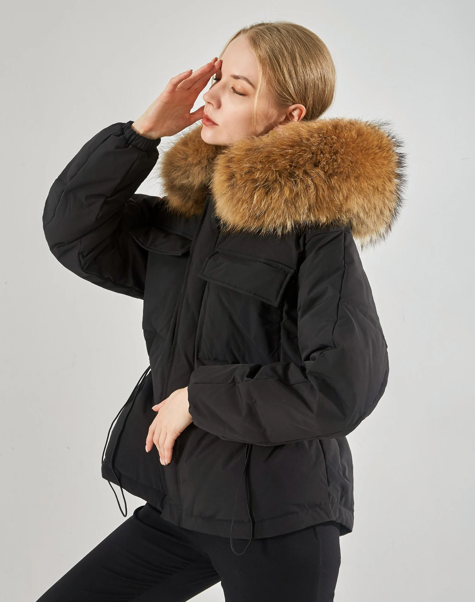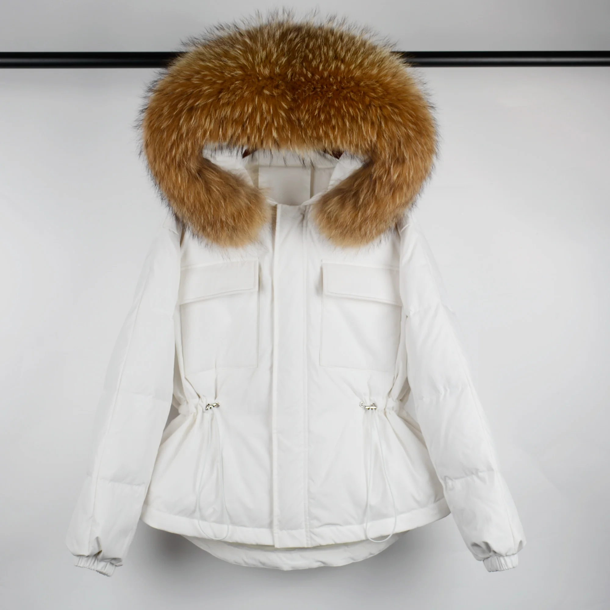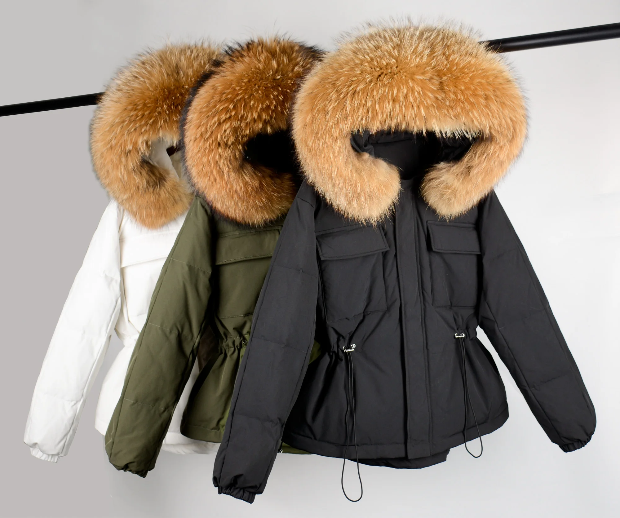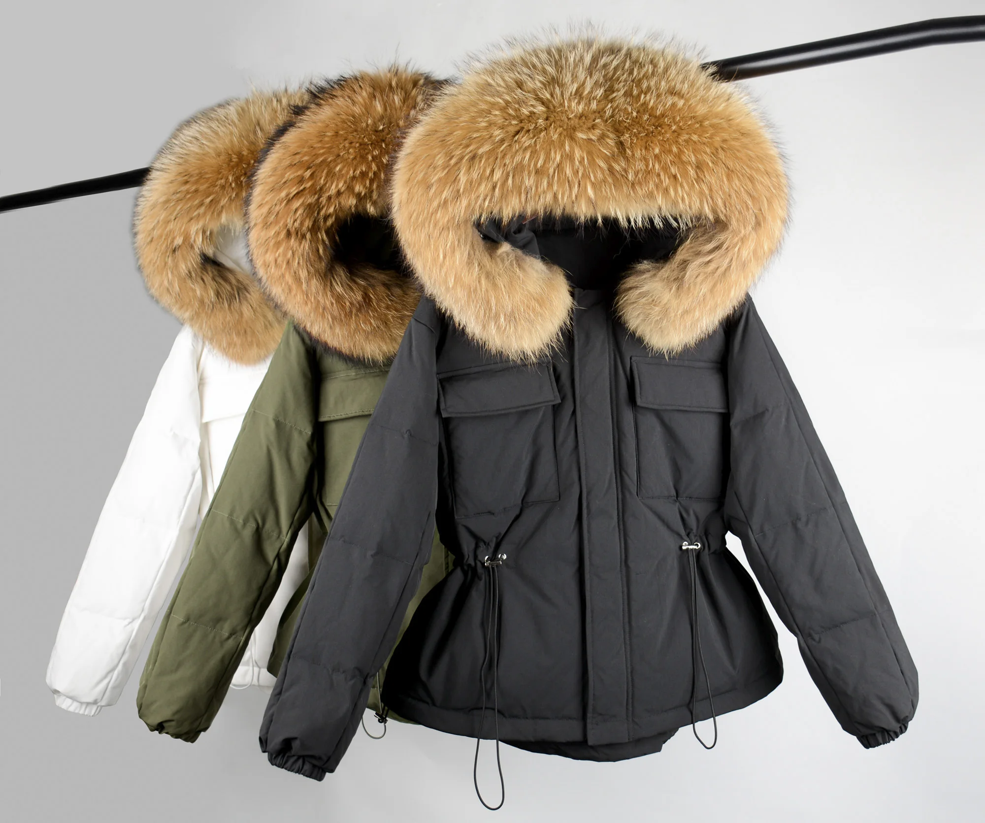 Воротник из натурального меха, мех енота, ширина каждого воротника составляет 20-22 см.