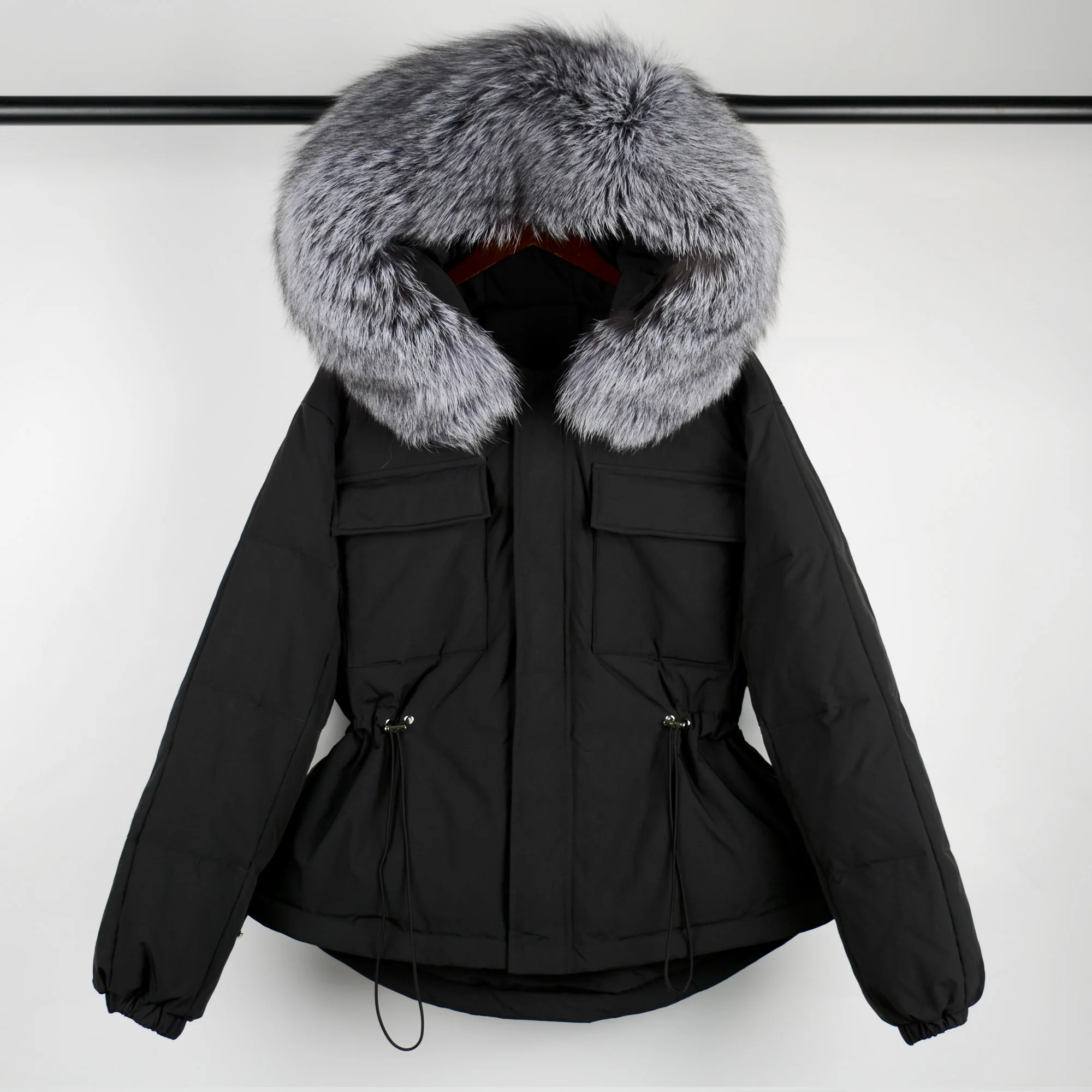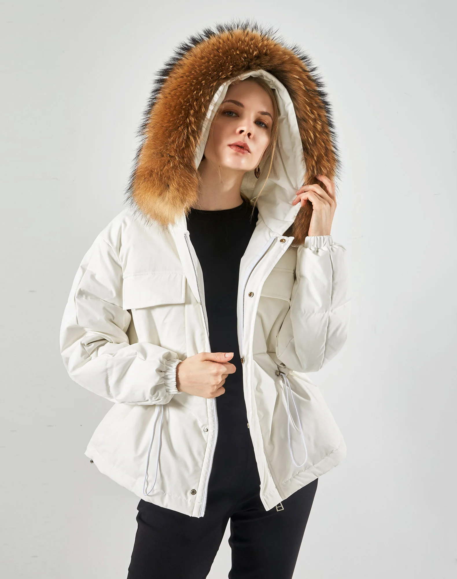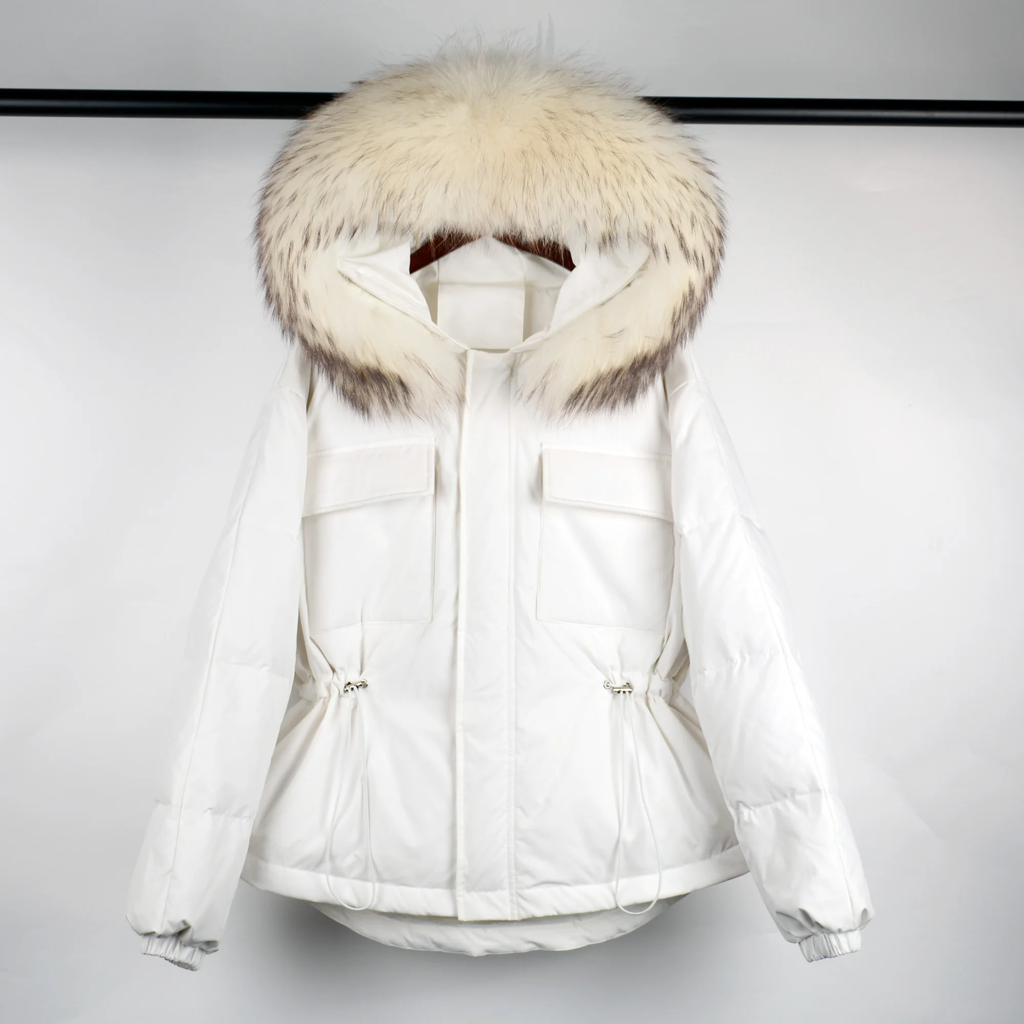 Воротник из натурального меха, мех енота, ширина каждого воротника составляет 20-22 см.