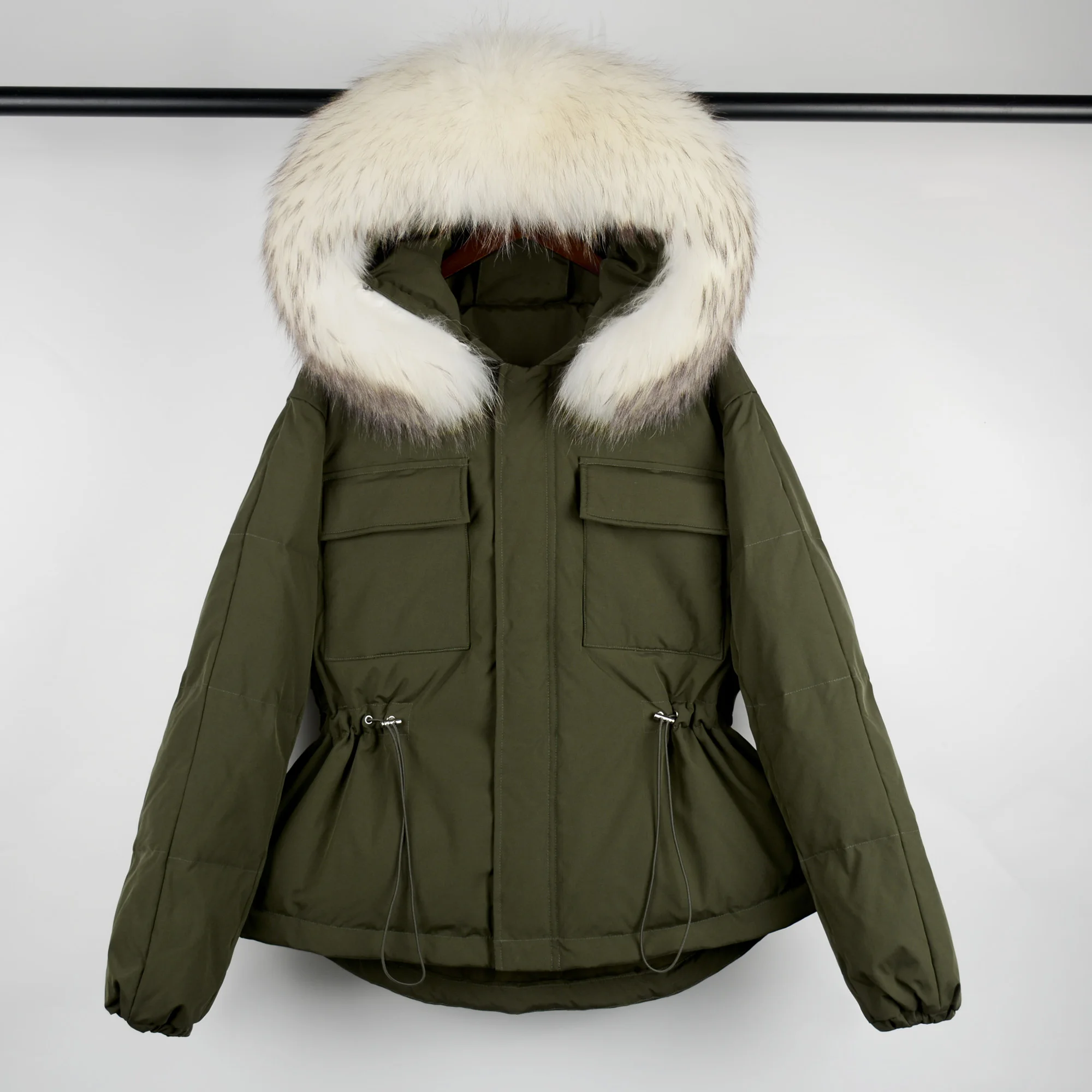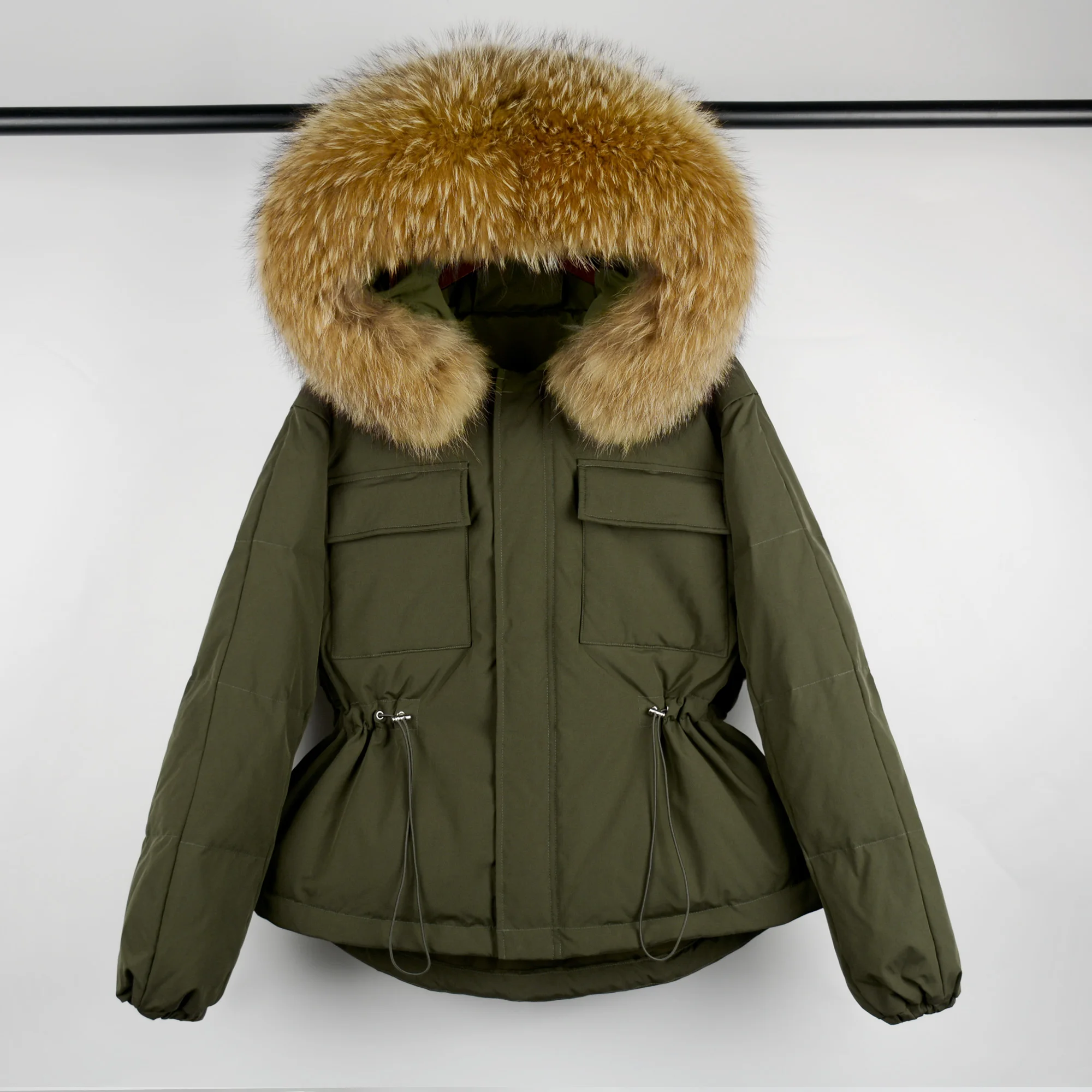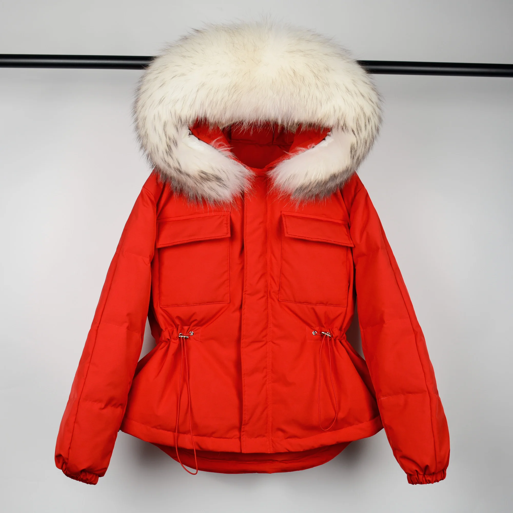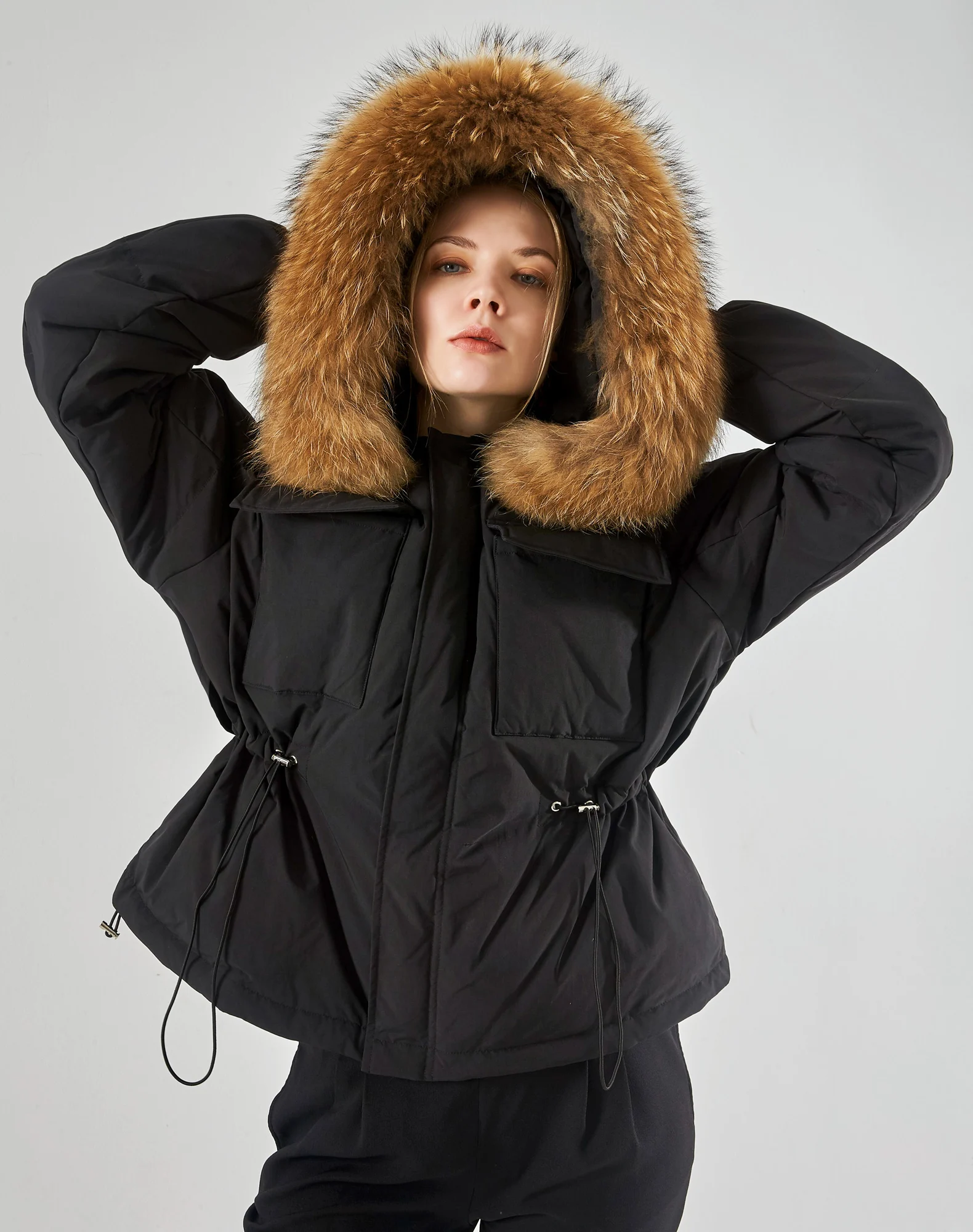 Воротник из натурального меха, мех енота, ширина каждого воротника составляет 20-22 см.