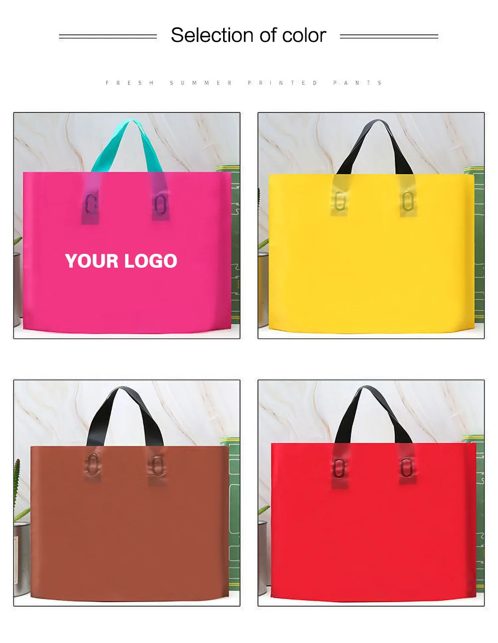 1.Usually Black , Red , Green ,Pink and more colors for white bags .