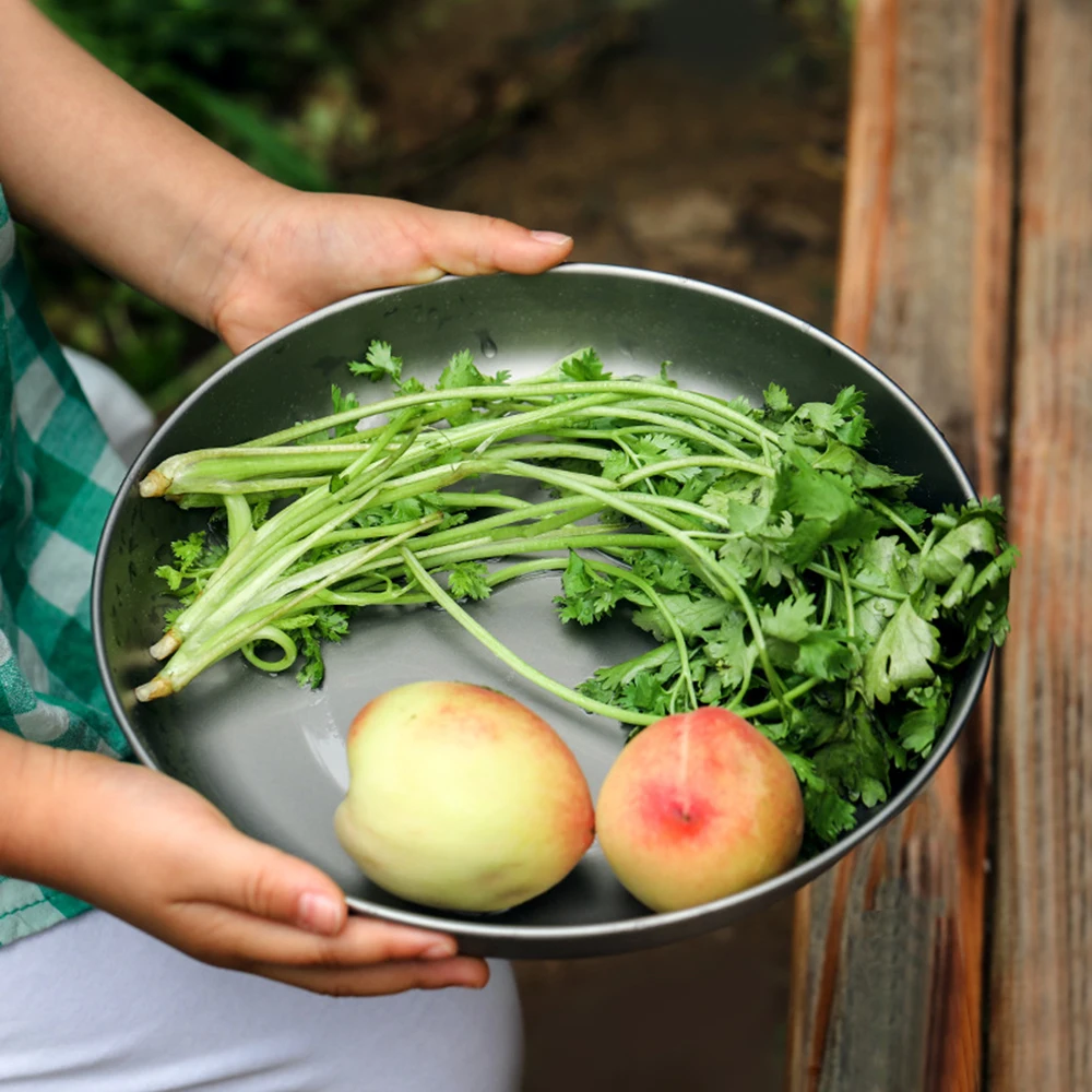 Эту титановую пластину можно использовать как фрипан, а также как контейнер для еды, фруктов и овощей. Он легкий и устойчивый к коррозии, очень подходит как для домашнего, так и для наружного использования.