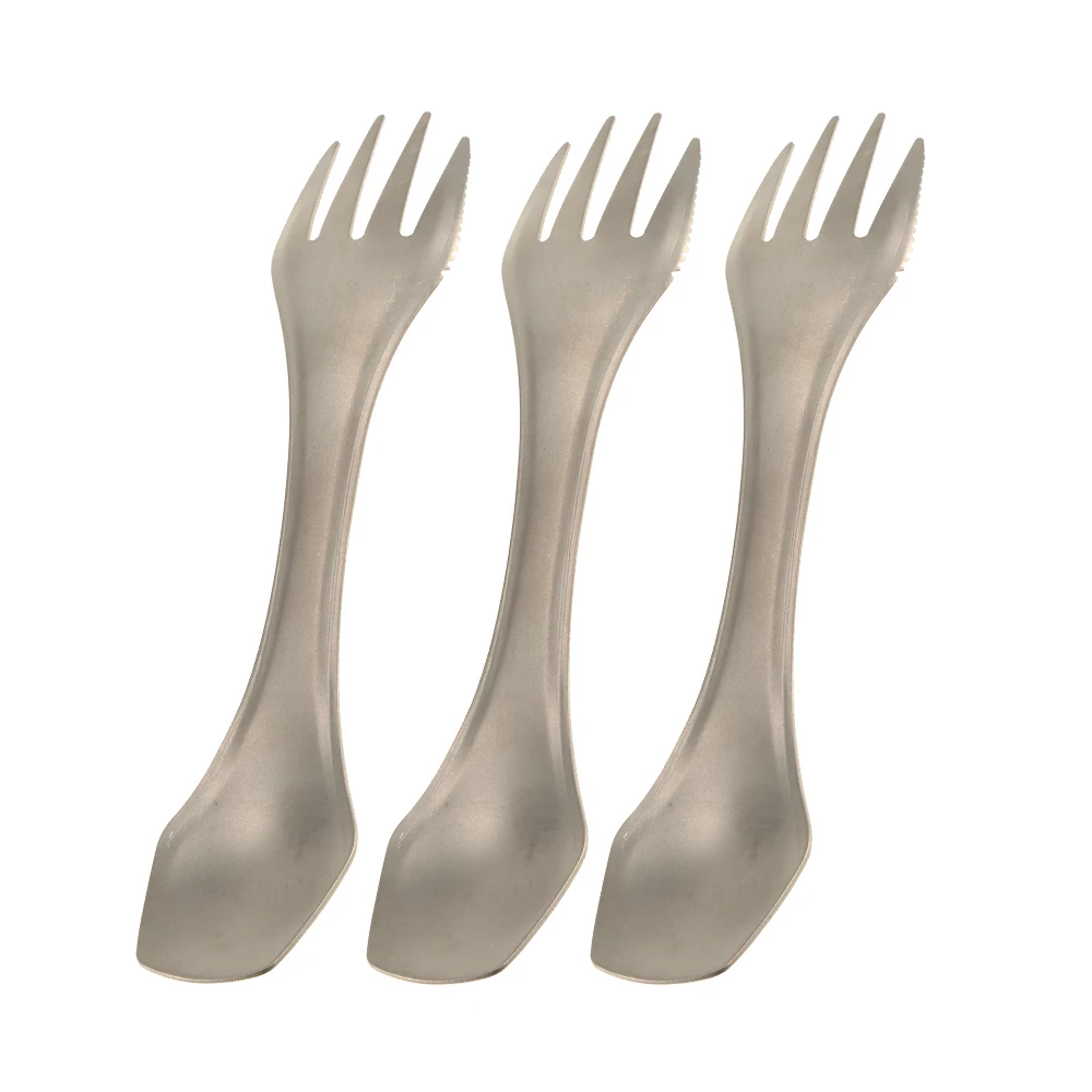 100% Титановая Ложка-вилка-нож комбо с зубчатым краем на стороне вилки.