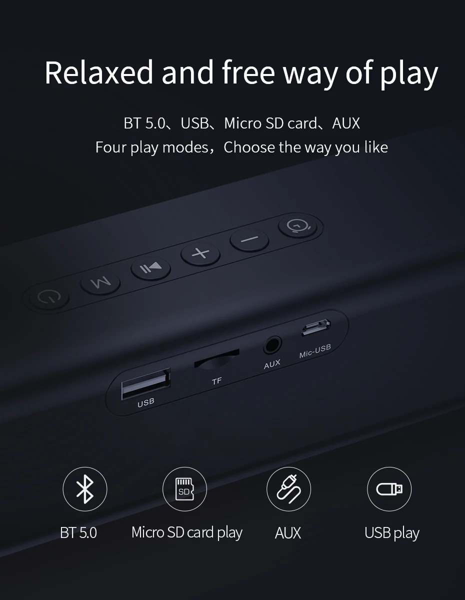 BT 5,0, USB, Micro SD карта, AUXFour режимы воспроизведения, выберите, как вам нравится