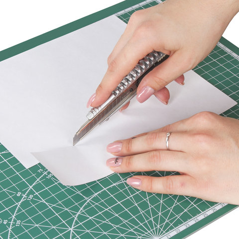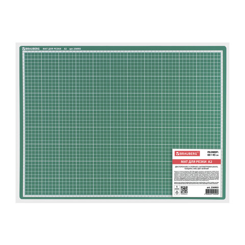 Высококачественный двусторонний мат (коврик) BRAUBERG предназначен для кроя деталей различных форм, удобен при изготовлении аппликаций. Защищает поверхность стола от повреждений и нож от затупления.