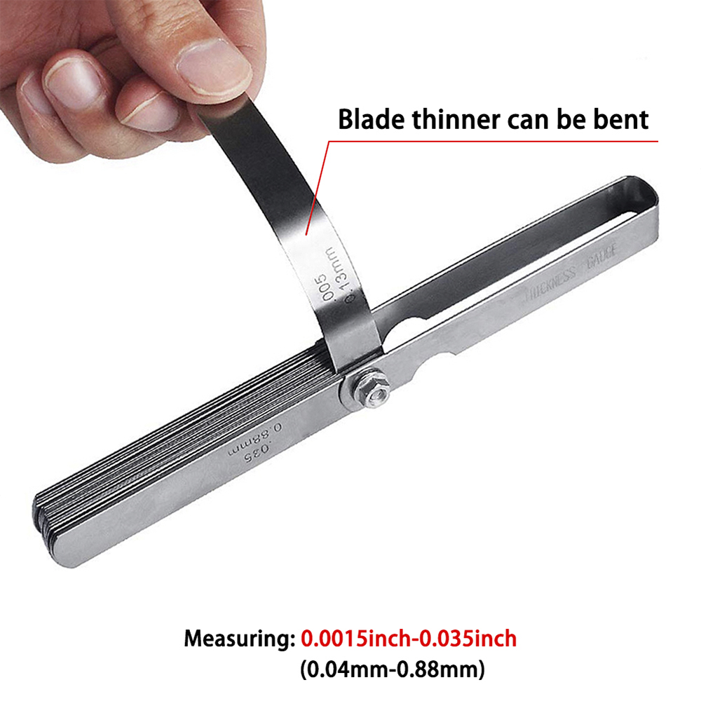 2. Складной Манометр: калибр изготовлен из закаленной стали с диапазоном 0,0015 дюйма/0,038 мм до 0,035 дюйма/0,889 мм; Это общий дальномер для расстояния между веревками; Шпиндель хрома легко чистится.
