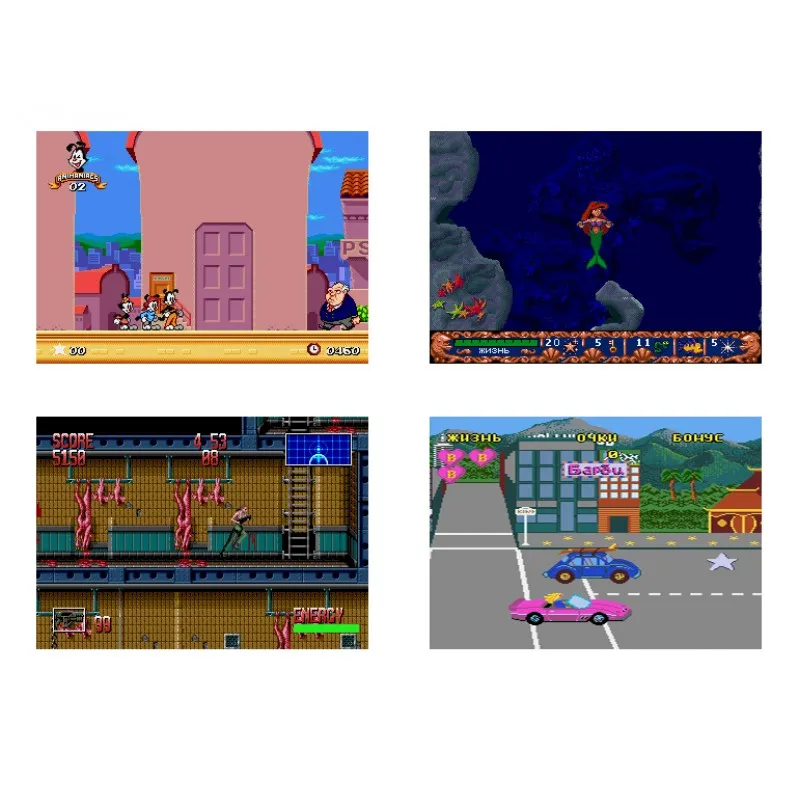 Совершенно не справедливо назвать игры в формате SEGA MEGA DRIVE 16 bit, примитивными и скучными. Чтобы развеять этот миф, мы предлагаем вам ознакомиться с нашим сборником для этой консоли. В сборник вошли 21 аркад от всемирно известных создателей таких как: Capcom, Electronic-Arts, Ocean Software, Konami, Disney и других не менее именитых производителей. Множество уровней с логическими загадками, интересные сюжеты, понятное управление, узнаваемые персонажи, хорошее звуковое сопровождение – это далеко не всё, чем смогут порадовать вас игры данного сборника-картриджа для платформы 16-bit. Преодолейте множество