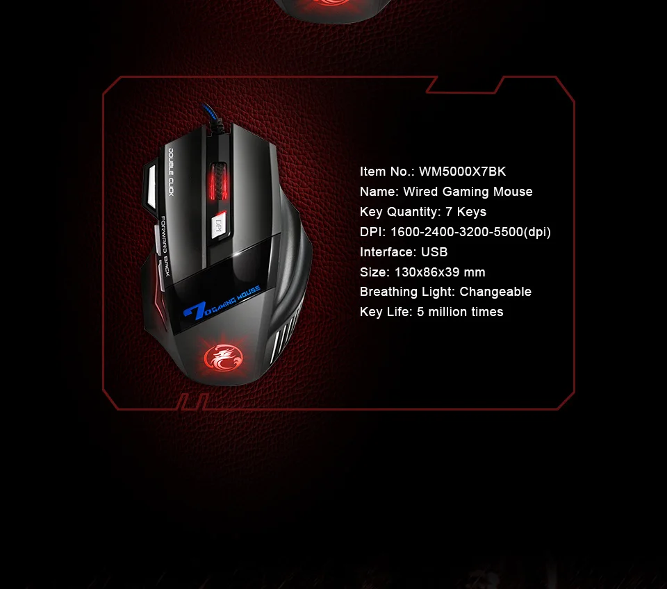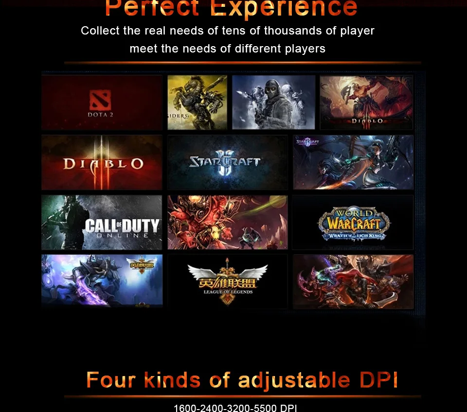 Регулируемый переключатель DPI: 1600-2400-3200-5500DPI