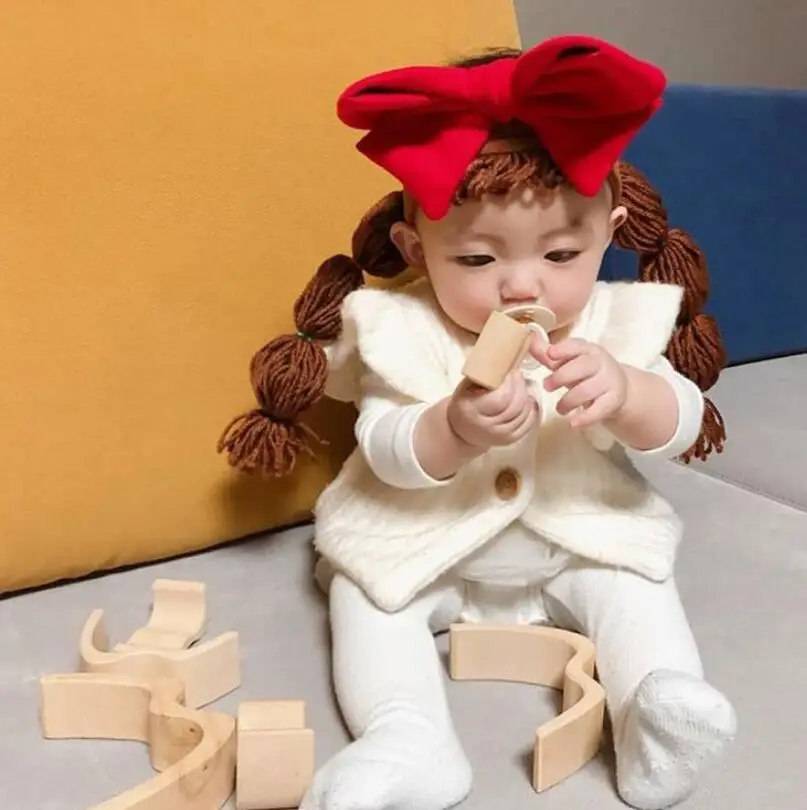 Детские повязки на голову в Корейском стиле для маленьких девочек, косичка для волос, парик с бантом для девочек, ручная работа, головной убор для новорожденных, аксессуары для волос