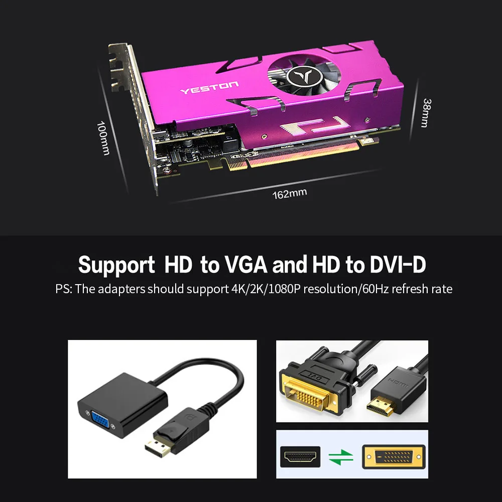 Поддержка разрешения 4K/2K/1080P, прямое подключение HD, HD-VGA и HD-DVI-D.(Адаптеры должны поддерживать разрешение 4K/2K/1080P/частоту обновления 60 Гц)
