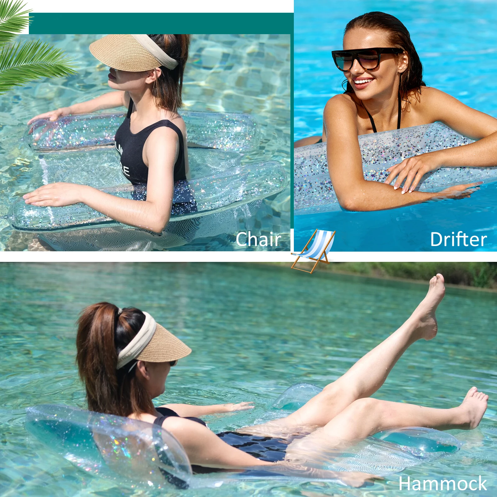 Многофункциональный плавательный поплавок-Четыре в одном дизайне, его можно использовать как кровать, кресло для отдыха, Дрифтер или седло для упражнений, чтобы удовлетворить ваши различные потребности и является идеальной игрушкой для бассейна на лето.