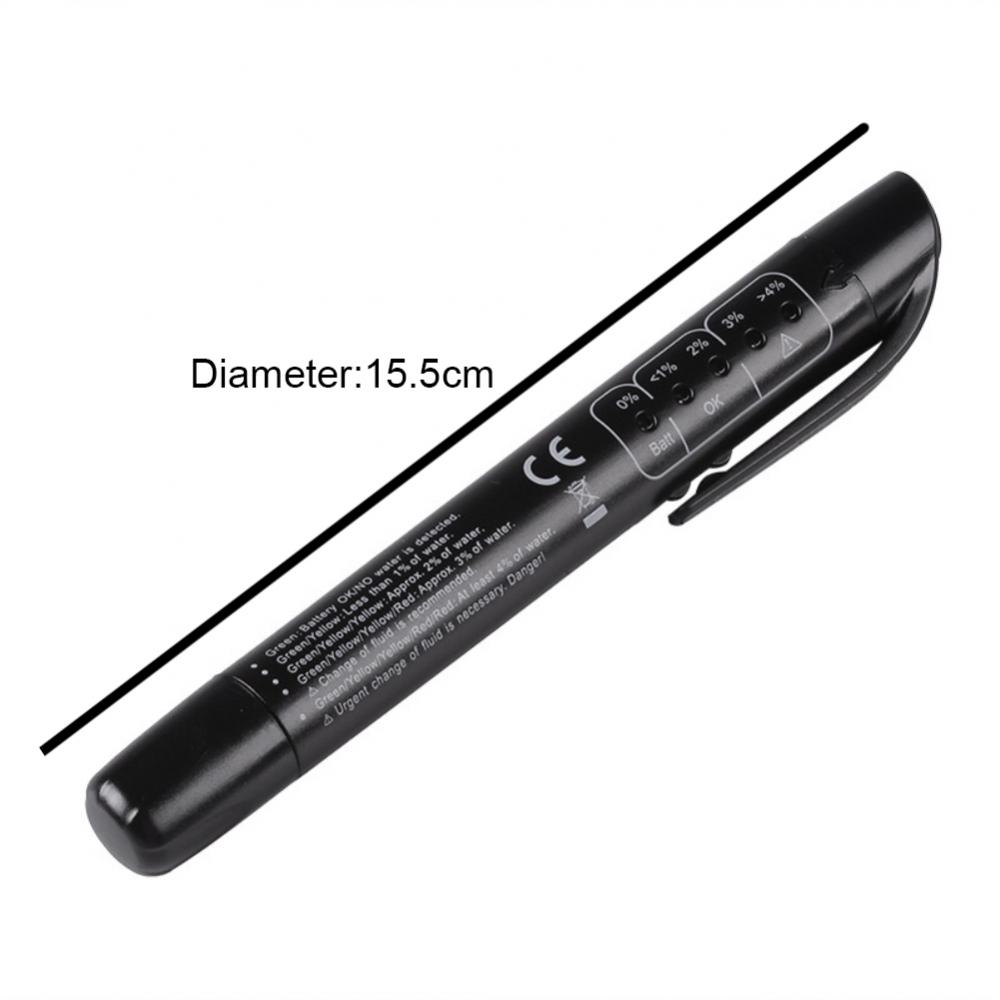 Ручка обнаружения тормозной жидкости основана на изменении проводимости для определения влажности тормозной жидкости. Он четко показывает степень влажности, содержащую светильник-излучающий диод, высокое содержание влаги приведет к более низкой температуре кипения, влияет на эффективность торможения. Красный цвет означает, что Тормозная жидкость нуждается в немедленном замене, зеленый цвет представляет хорошее состояние, желтый цвет означает, что состояние приемлемо, но вскоре заменяется.