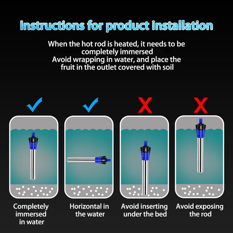 Поскольку нагревательный эффект этого продукта сильный, при использовании этого продукта, он должен медленно повышаться от низкой температуры до нужной вам температуры. Обратите внимание на изменение температуры воды в первые 48 часов, чтобы избежать высокой температуры.
