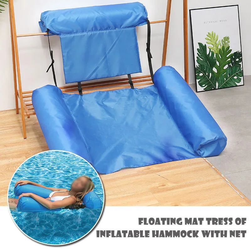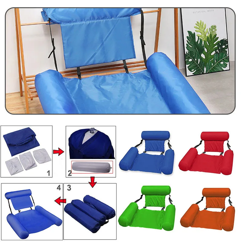** Дизайн: боковые подлокотники и подголовник имеют встроенные надувные пузырьки для обеспечения поддержки спины и рук для отдыха в бассейне, плавающие на озере или дрейфующие на реке в этом плавающем кресле для отдыха