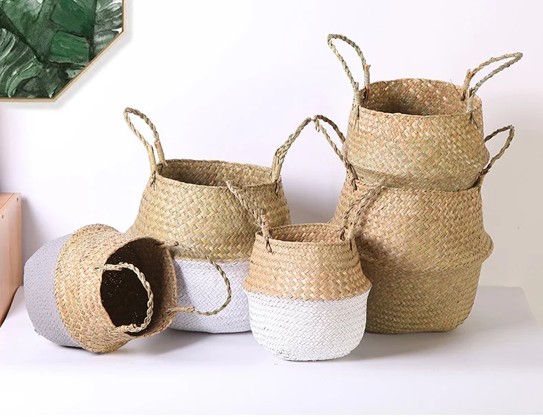 Скандинавские водоросли плетеная корзина для цветов, плетеный портативный цветочный горшок из ротанга, корзина для сушеных цветов, корзина для хранения ручной работы, Бамбуковая плетеная корзина, гостиная