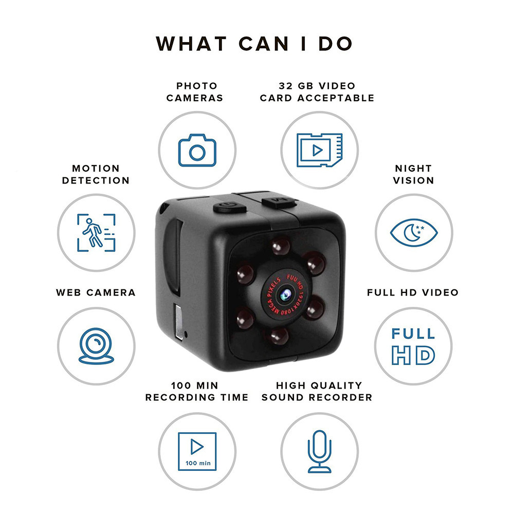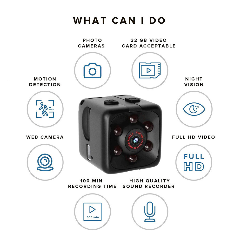 Портативный Наблюдение: камера имеет маленький и портативный размер (0,98*0,98*0,98 дюйма), улучшенная матовая отделка. Кроме того, вы можете использовать Камера как мини DV на улице или воздушная Экшн-камера для развлечения. Так что Много различных применений в мини-камере.