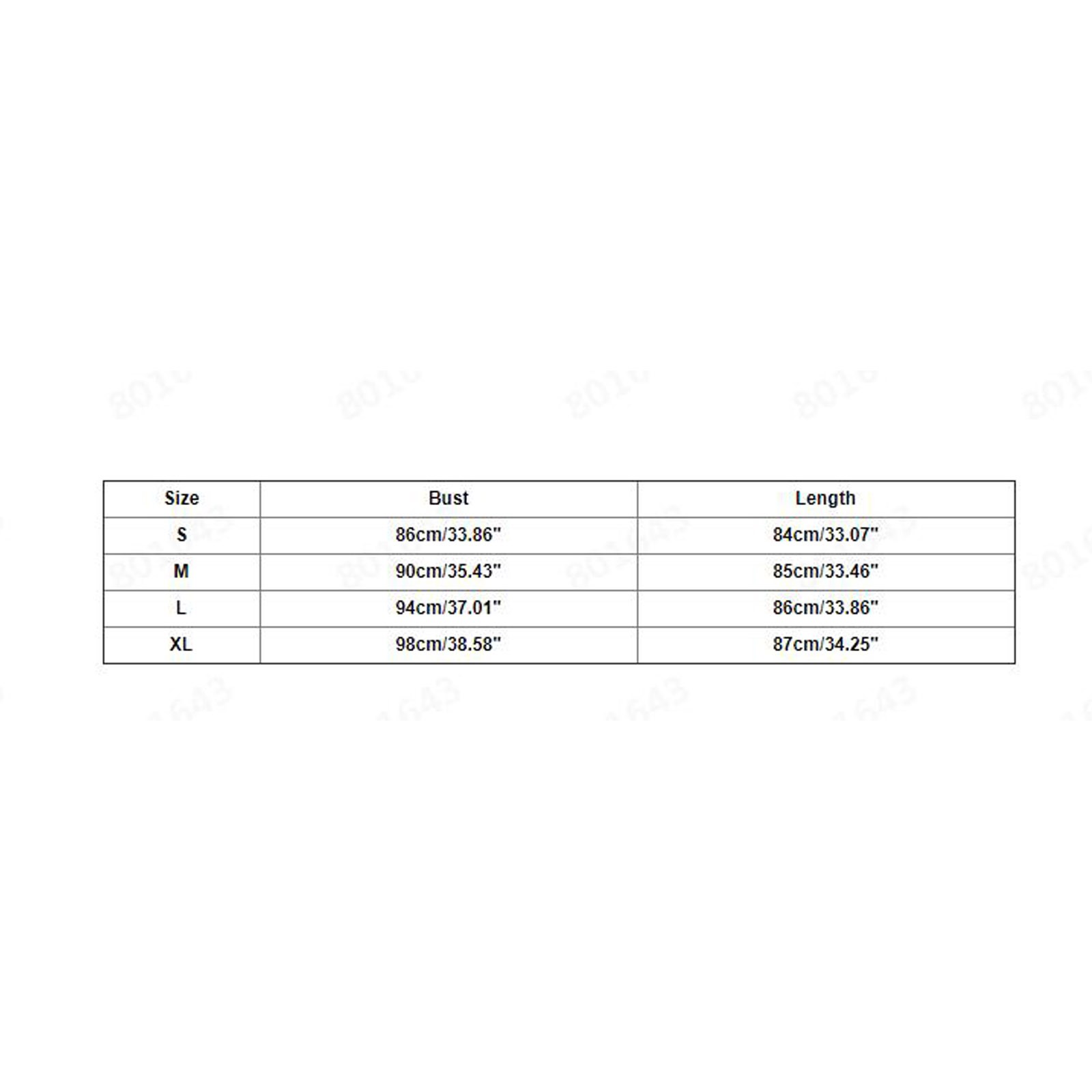 Size Bust Length S 86cm/33.86'' 84cm/33.07'' M 90cm/35.43'' 85cm/33.46'' L 94cm/37.01'' 86cm/33.86'' XL 98cm/38.58'' 87cm/34.25''