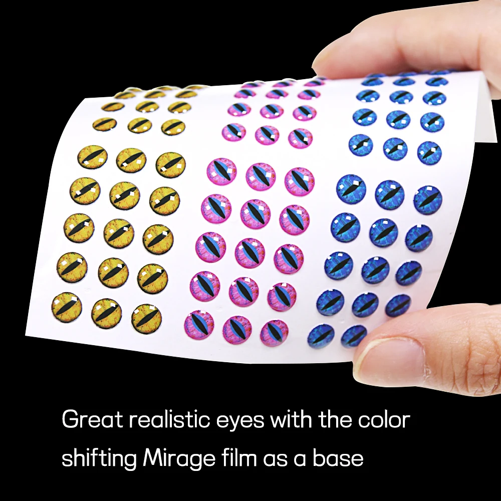 -Предназначен для того, чтобы сочетать с поверхностными соблазнительными телами, такими как двойные створки Поппер тела, эти глаза имеют отчетливо рептилический вид-Подумайте лягушки, рептилии и другие создания, которые рыба любит ударить. Также совместим с шлемами Sculpin, масками для рыб и головками Baitfish.
