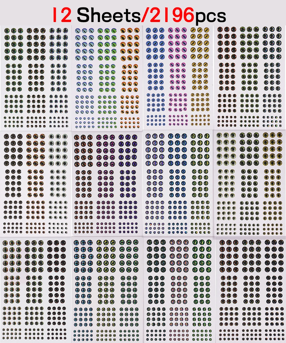 Elllv 12 листов/2196 шт Ассорти голографические эпоксидные 3D рыбий глаз 3 мм ~ 6 мм DIY материал для рыбалки приманки Джиги Стример Летать