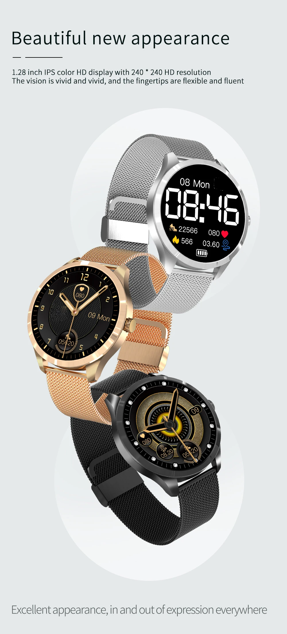 5. Экран: 1,28 дюймов IPS цветастое Разрешение экрана: 240*240.