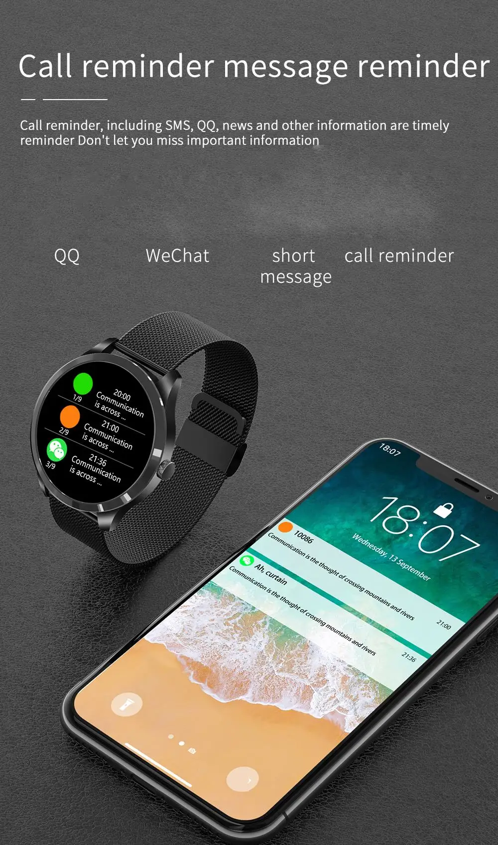 3. Будильник, напоминание о напитках, напоминание о сидячем положении, напоминание о звонках, напоминание о разрыве и т. д. уведомления (SMS/QQ/Wechat/Skype/Facebook/Twitter/Line/WhatsApp).