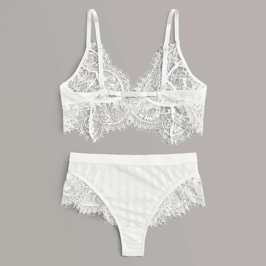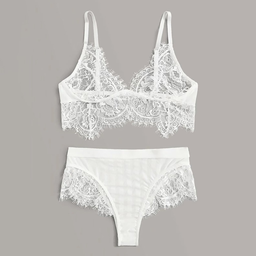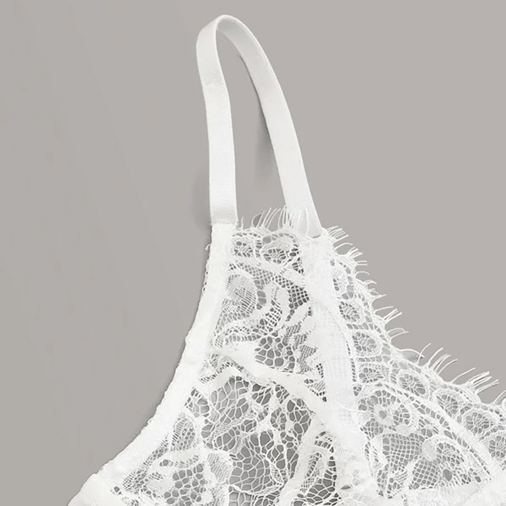 Кружевное белье, беспроводной бюстгальтер, женское нижнее белье, одежда для сна, стринги, с отверстиями