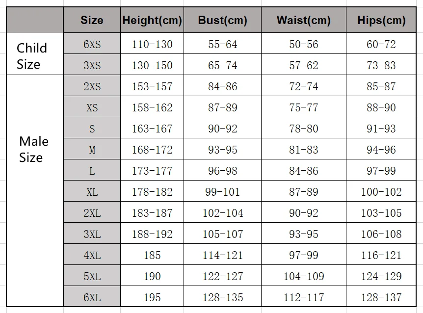 Размер на заказ: пол, вес, а: рост B: обхват груди C: обхват талии D: обхват бедер
