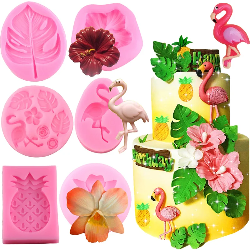Силиконовая форма фламинго, роза, тропический цветок, черепаха, лист, арбуз, ананас, конфеты, шоколадная форма, сделай сам, инструменты для украшения торта