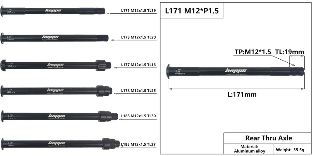 Длина: 125 мм/156 мм/171 мм/173 мм/175 мм/177 мм/178 мм/183 мм/185 мм M12xP1.5