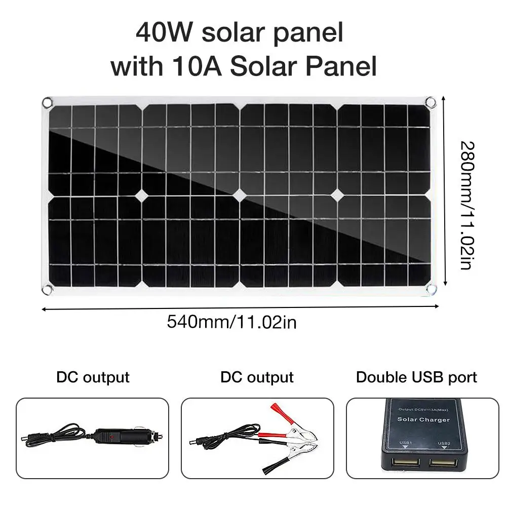 Солнечная панель с двумя USB-портами 40 Вт 10 А/20 А/30/40 А |