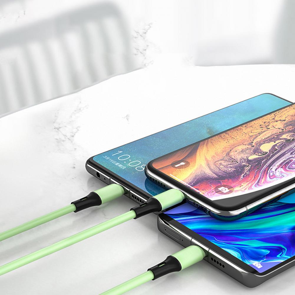 С 3-в-1 дизайн, кабель для передачи данных поддерживает три устройства могут заряжаться в одно и то же время.