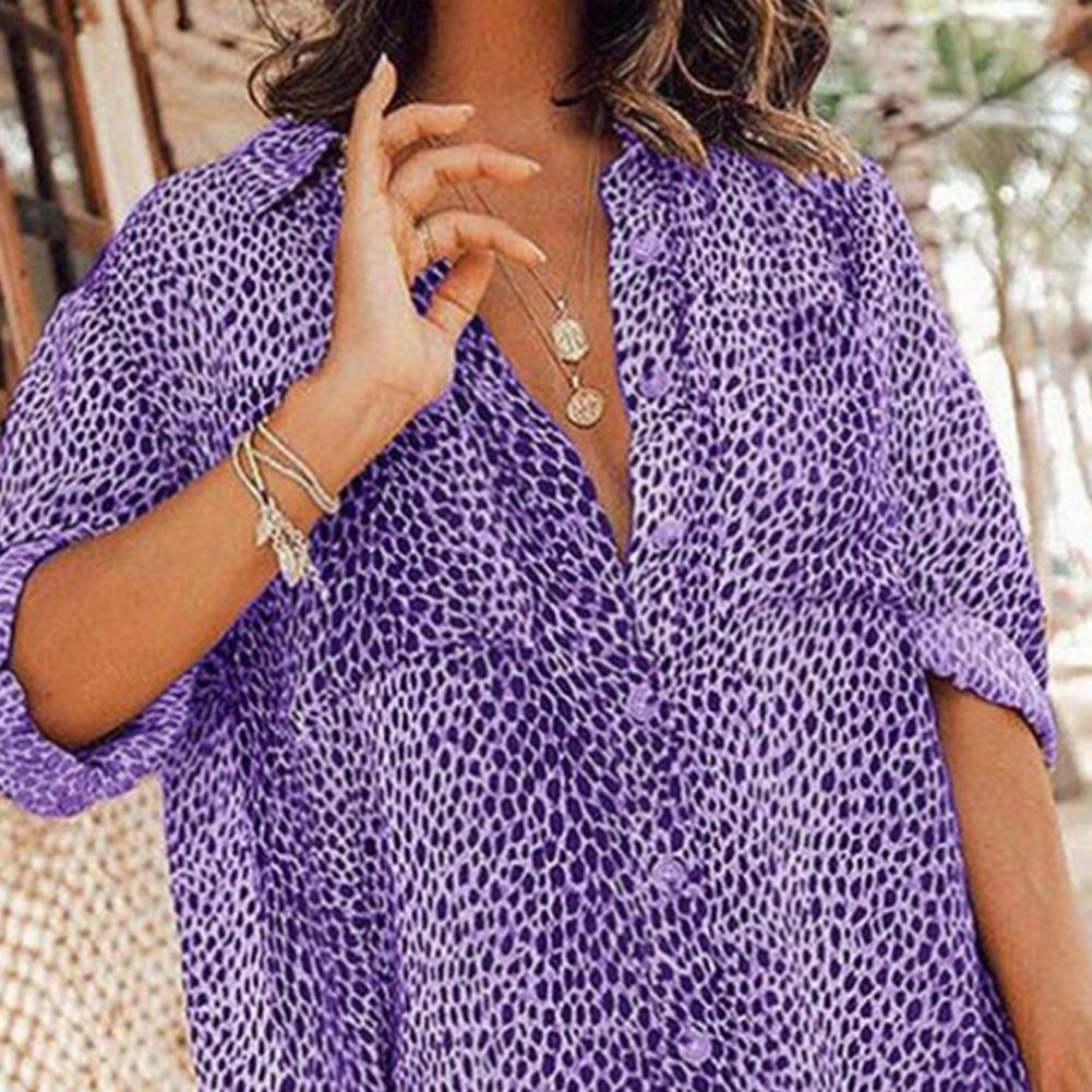 Элегантная Женская Весенняя рубашка с леопардовым принтом, свободная летняя однобортная блузка с отворотом для свиданий, Длинная блузка, рубашки